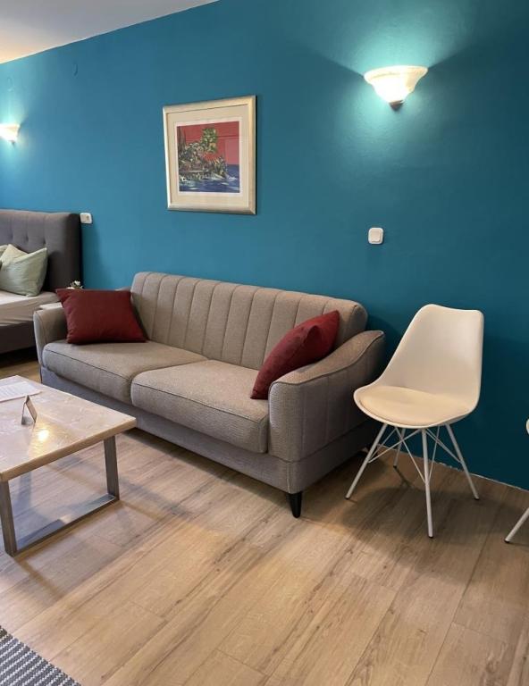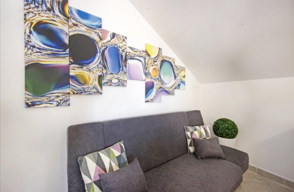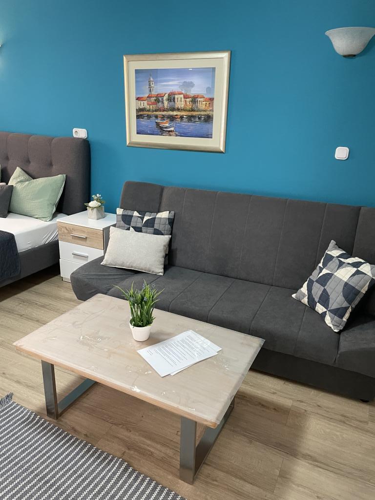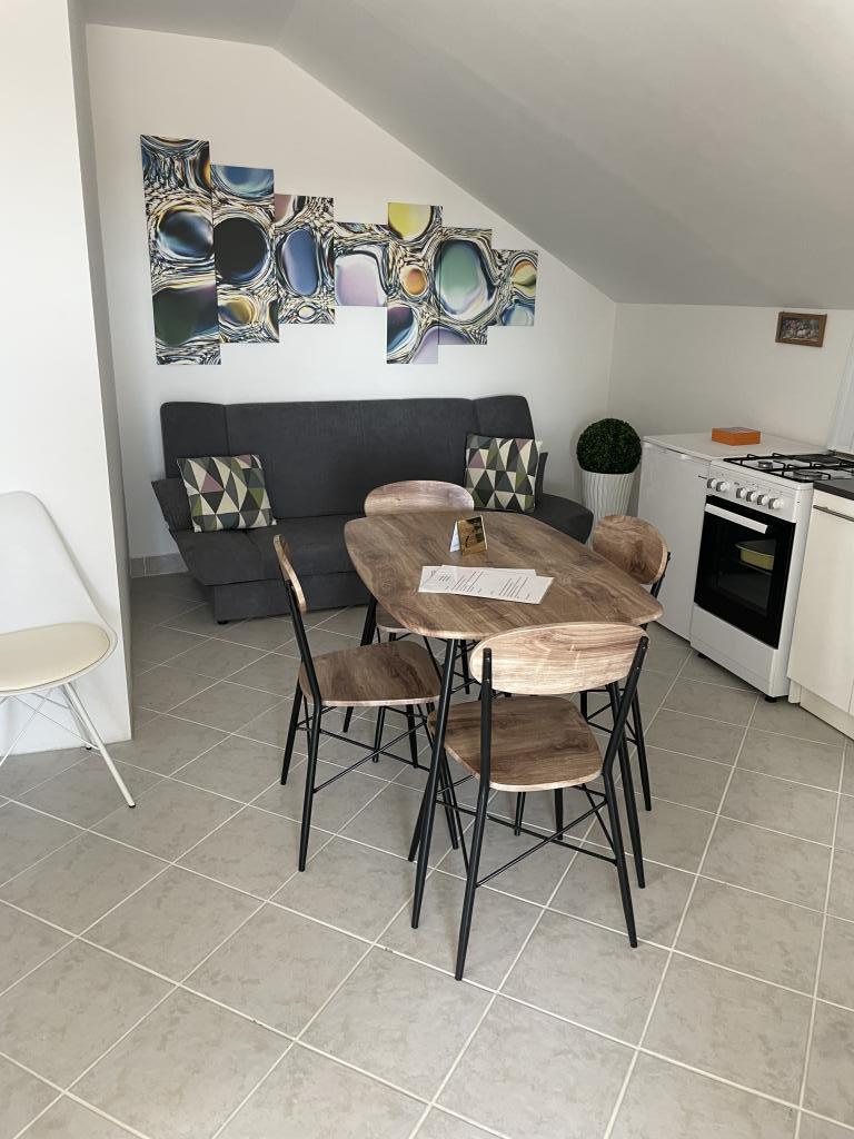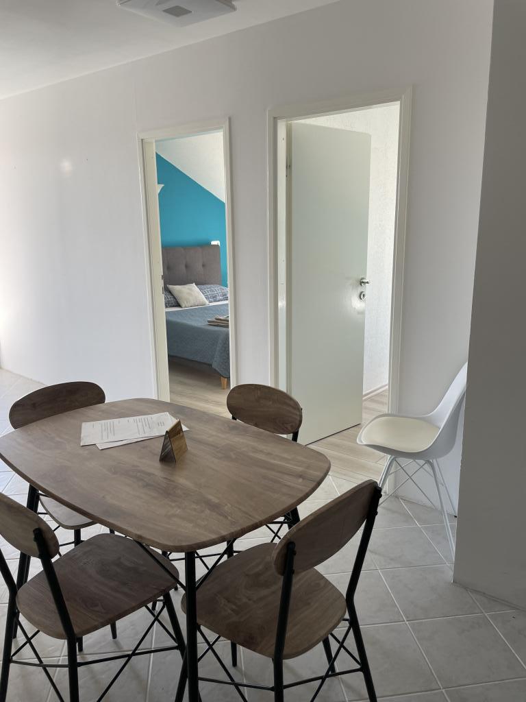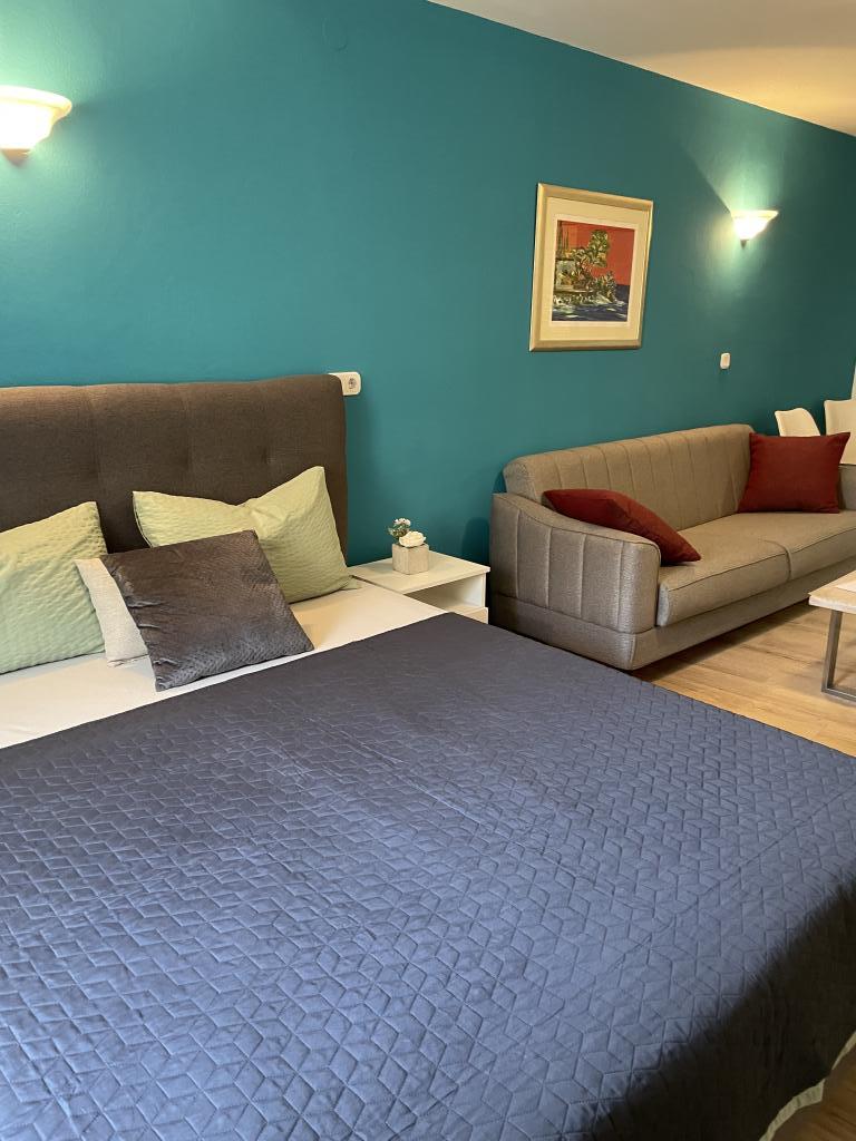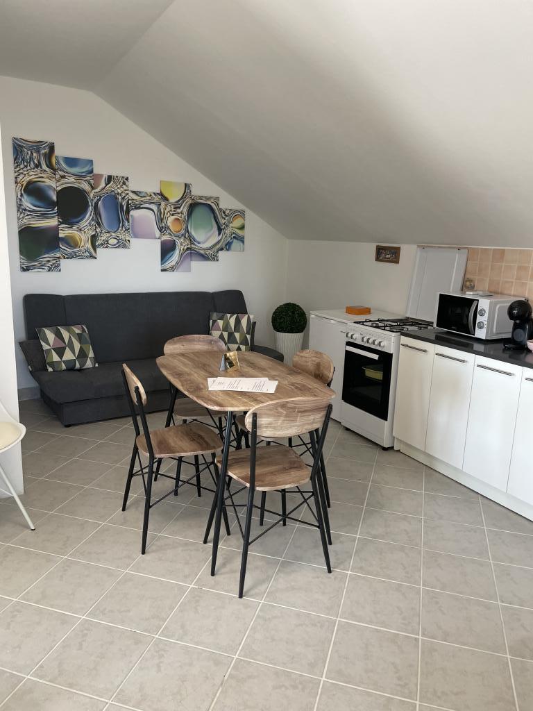 Popolnoma in moderno opremljeni apartmaji v centru Vodic, 150 metrov od morja, se nahajajo 1 minuto hoje do centra in 5 minut hoje do plaže... Poseben apartma v stilu taverna z dvema spalnicama. Ena spalnica z zakonsko posteljo in ena spalnica z zakonsko in enojno posteljo. Poleg tega imate apartma s pogledom na morje tudi za 5 oseb z dvema zakonskima posteljama v 2 sobah z enim pomožnim ležiščem za 3 osebe in balkonom s čudovitim pogledom na morje 2 Apartmaja 2+1 oseba z zakonsko posteljo ter dodatno ležišče in eden od teh dveh apartmajev ima tudi balkon. Posebna ponudba za 6 in 9 mesecev: plačajte 5 nočitev in dobite eno nočitev brezplačno!! Poleg tega imate brezplačno parkiranje. Dobrodošli v čudovitih Vodicah