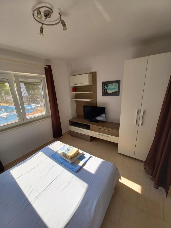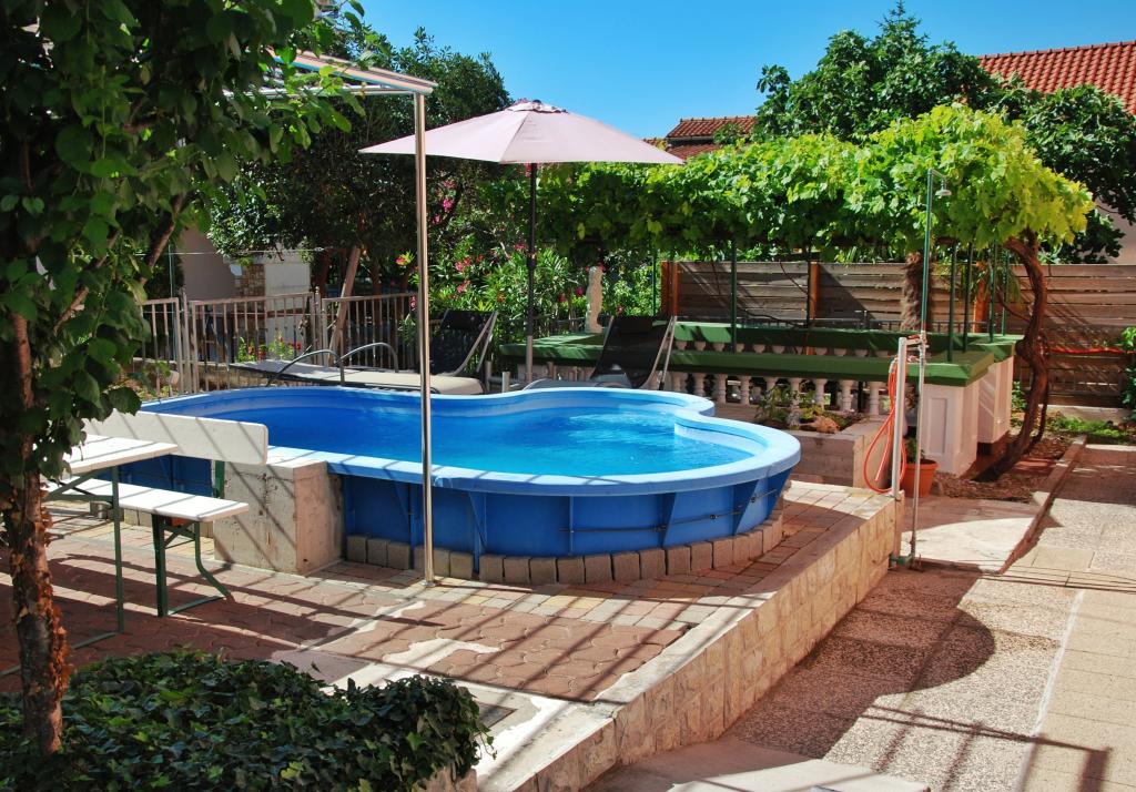 Turistična taksa je vključena v ceno. Dokument o potrditvi rezervacije ob rezervacijiČeprav ne živimo na istem naslovu, smo vsakemu gostu na voljo 24 ur na dan. 2 kolesi, žar in seveda bazen, ki sicer ni prevelik (4*2m), a popolnoma zadovoljuje potrebe, predvsem otrok, je na voljo vsem. Prav tako imamo za vsak apartma urejena 2 ločena prostora za počitek in posedanje v senci s klopmi.Na pokritem parkirišču je prostora za 2 avtomobila, za tretjega pa je parkiran zadaj. Oba apartmaja sta opremljena s klimo, TV/sat.