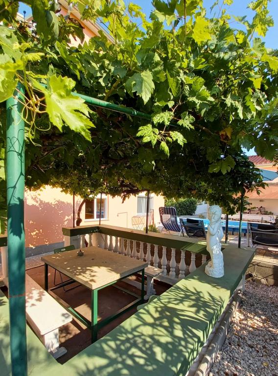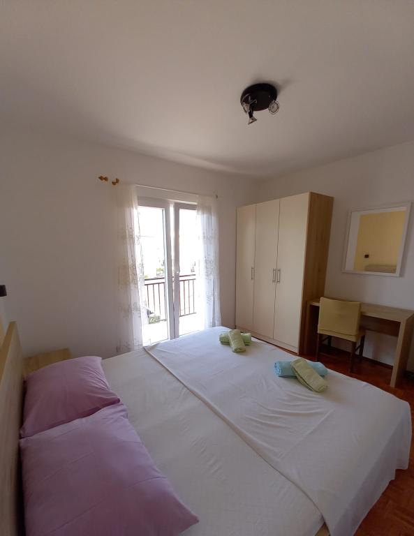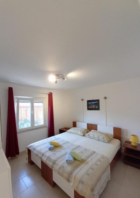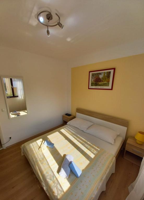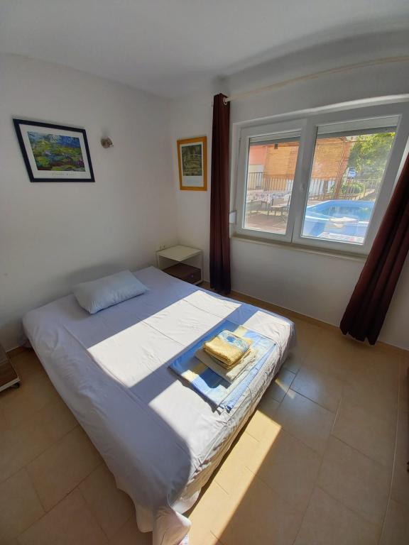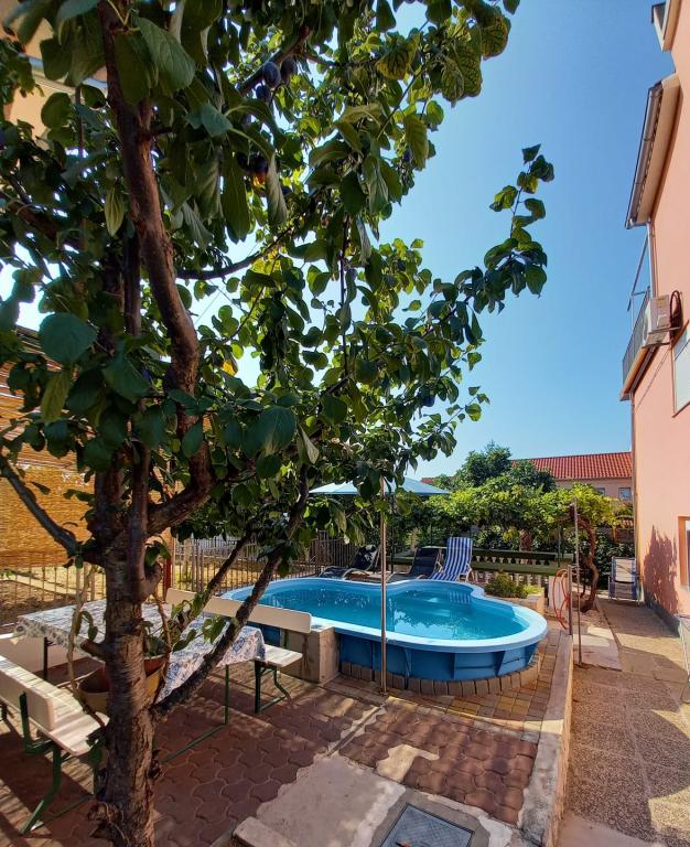 Popolnoma prenovljena stanovanja v čudoviti soseski, malo stran od centra, a hkrati zelo blizu, saj potrebujete le 5-10 minut hoje. Predvsem ciljamo na družine z otroki, za katere tudi nudimo popust. Čeprav ne živimo na istem naslovu, smo vsakemu gostu na voljo 24 ur na dan. 2 kolesi, žar in seveda bazen, ki sicer ni prevelik (4*2m), a popolnoma zadovoljuje potrebe, predvsem otrok, je na voljo vsem. Prav tako imamo za vsak apartma urejena 2 ločena prostora za počitek in posedanje v senci s klopmi.Na pokritem parkirišču je prostora za 2 avtomobila, za tretjega pa je parkiran zadaj. V našem objektu sta 2 apartmaja, eden je v prvem nadstropju s 3 sobami, drugi pa je v pritličju z 2 sobama in raztegljivim kavčem, kjer lahko biva še ena oseba.