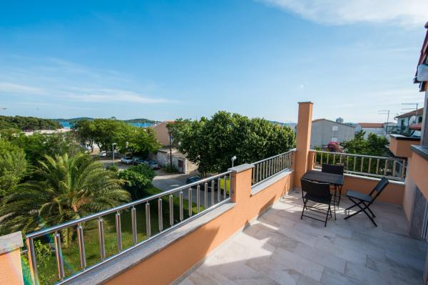 Preživite nepozabne trenutke v razkošno notranjost Villa Ljubica v samem centru mesta. Vila vsebuje 8 izjemno opremljenih apartmajev 85m2, tudi če bo vsaka oseba, ki imajo svoj mir in udobje v času vašega bivanja. Prenočišča vključujejo bazen, klima v vseh prostorih, WiFi, parkirni prostor, ki je vse zastonj za goste. Apartma ima kopalnico s tušem in ločen WC, pomivalni stroj, pečica, štedilnik, hladilnik, zamrzovalnikov, štedilnik, jedilna miza s 6 stoli, velik kavč, posteljnino, brisače, SAT TV LCD TV, prostorno teraso / balkon, stoli, dežniki, brisače, plaža stoli, zunanji tuš, žar, sončenje Poleg magične poglede in razkošen bazen obdan z avtohtonih rastlin, naša lokacija je izjemna, saj smo v centru, vendar brez hrupa. V bližini je Nacionalni park Krka in Kornati, in vodni park, ki je zabava za vso družino. Naši gostje pričakujejo in dodatne zmogljivosti, kot so križarjenje na noč čoln, itd