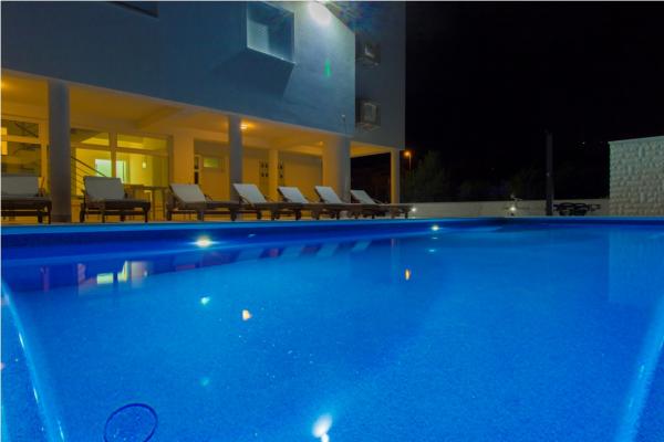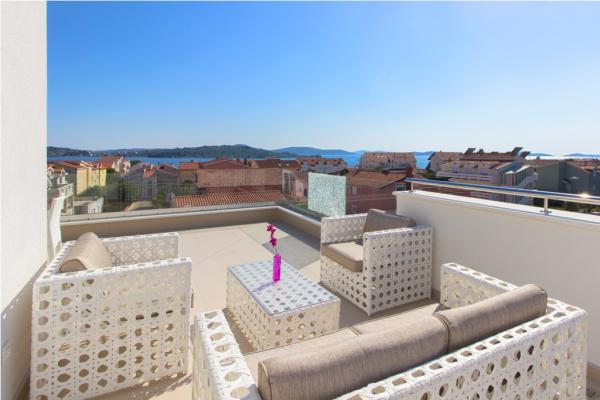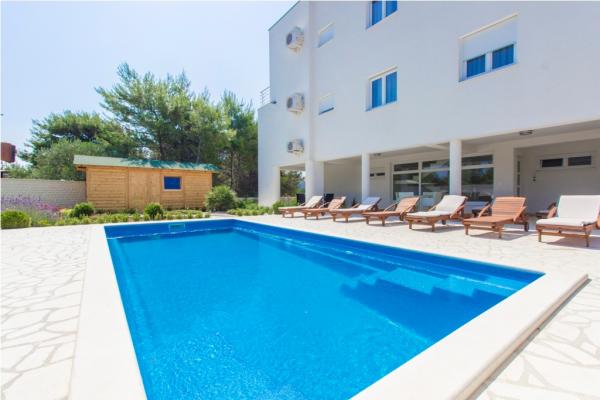 Villa Royal je sestavljen iz 6 apartmajev, ki so kategorizirane s 5 zvezdic. Vila ima bazen z ležalniki. Nahaja se v vasici Srima v bližini mesta, in je 350 metrov od morja. Obstajajo svetle in klimatizirane apartmaje z brezplačnim brezžičnim internetom, LCD TV s satelitskimi programi, teraso in brezplačno parkiranje. Vsi sodobni apartmaji imajo klimatsko napravo v dnevni sobi in spalnici, popolnoma opremljeno kuhinjo s pomivalnim strojem in pečico, kuhalnik in hladilnik. Vsak apartma ima 2 kopalnici in wc. Kopalnice so opremljene s kadjo, pralni stroj, tuš kabino in sušilcem za lase. Najbližja plaža je 350 metrov, kot tudi restavracija in kavarna. Smernice Center je 1500 metrov, Šibenik 15 km, Zadar 60 km, Krka National Park 30 km Skradin 30 km, Split 90 km in se nahaja v bližini narodnega parka.