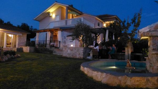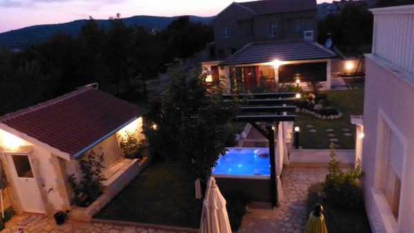 Villa Vagabundo - zagotavlja pravljični oddih za dušo in telo za vse generacije. Moderna, udobna in nekoliko rustikalna vila zgrajena (2012 let), z veliko ljubezni in topline, se bo izpolnila vsa vaša pričakovanja in zadovolji tudi najzahtevnejše. Nahaja se na mirni lokaciji, obdan z mediteransko vegetacijo, na 1300 m s pogledom na morje in letovišče. Zagotavlja sproščeno vzdušje in nepozaben dopust, ki si ga zaslužiš! Primerno za družine z otroki, saj na veliko dvorišče in mir uma. Na vrtu je lepi kamniti vodnjak in žar. Na zahtevo nudimo doplačila naši mali spa ponujajo masažno kad z masažo in aperit, in majhen čoln, ki lahko sprejme do bližnjih otokov za kopanje v prelepem zalivu vaši izbiri z doplačilom. Vodice je lep kraj, ki poudarja lepoto Jadrana, gastronomska ponudba, lepo čisto naravne in prodnate plaže, nočno življenje in gostoljubnost vsi domačini - Pridi in poglej !! Vaše zadovoljstvo je naš GARANCIJA !!!! :)