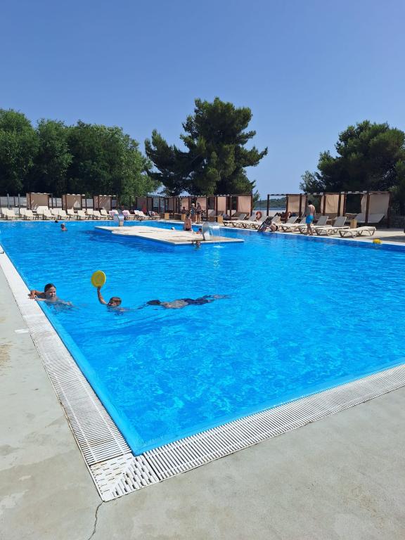 Cena vključuje uporabo velikega bazena v kampu, ki je oddaljen približno 40 m od same hiše. Parkiranje je brezplačno za 1 avto/kombi in se nahaja tik ob hiši.