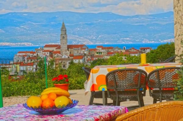 Apartma in studio Noa se nahaja na mirni lokaciji Vrbnik, obdan z zelenjem, s čudovitim pogledom na morje in staro mestno jedro. Objekt se nahaja 10 minut hoje od centra in plaže. Vsaka enota ima svoj vhod, parkirišče in teraso ločeno.