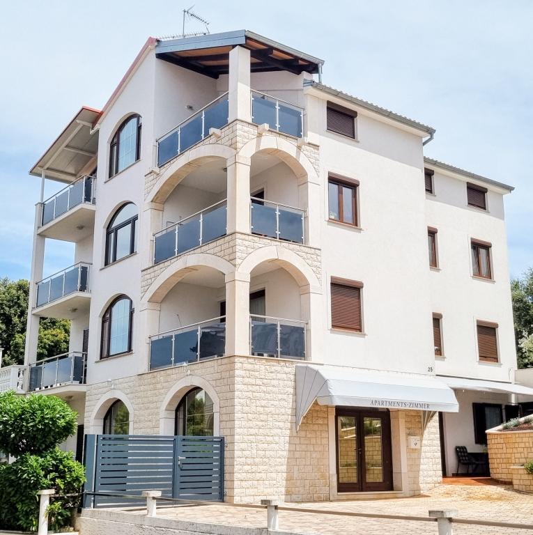 Apartmaji se nahajajo v družinski hiši 400 m od morja in 10 min hoje od centra mesta. Apartmaji se nahajajo v mirnem delu mesta in svojim gostom omogočajo sprostitev v gozdnatem vrtu s paviljonom. Parkirišče je zasebno. Cene vseh apartmajev so po dogovoru in so okvirne glede na termin in število oseb.