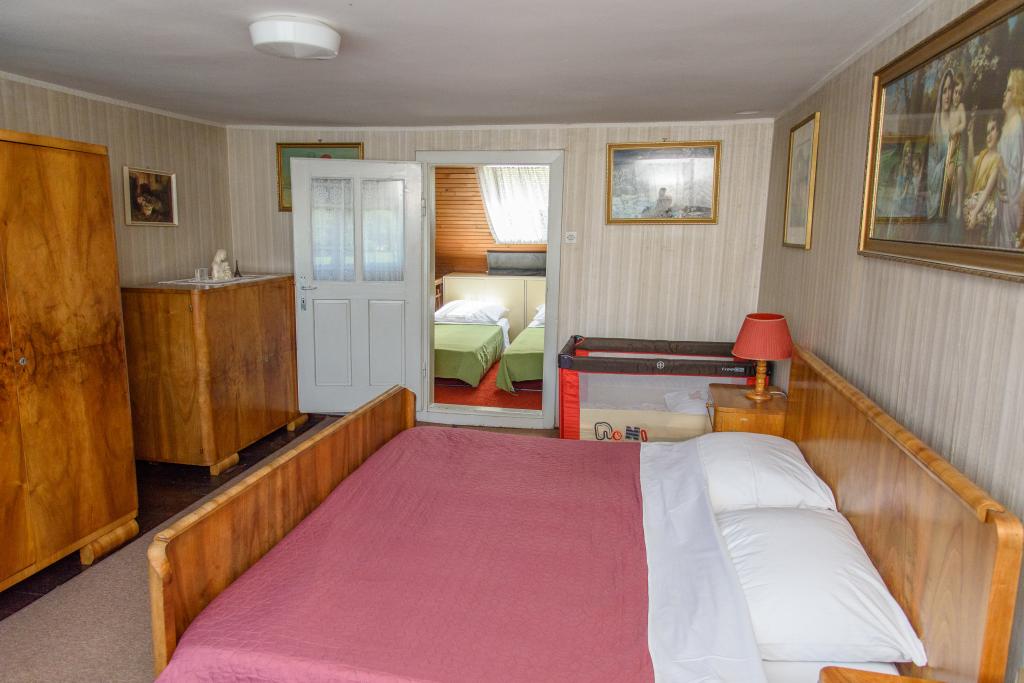 Ta čudovita podeželska hiša je sestavljena iz dveh nadstropij. V spodnji etaži je sončna dnevna soba, popolnoma funkcionalna kuhinja, garderobne omare, skupni prostor ter ločena kopalnica in WC. V drugem nadstropju je predprostor s sedežno garnituro, dvema dodatnima ločenima ležiščema in glavno spalnico z veliko zakonsko posteljo in dodatno sedežno garnituro. Hiša ima stari čar, je prijetna in ima vse, kar potrebujete. Ima veliko dvorišče za žar, otroke za igro in pse za tek ali sprehod po posestvu. Pred hišo imajo gostje lastno parkirišče in teraso s sedežno garnituro. V spomladanskih in poletnih mesecih gojimo ekološki vrt s številnimi vrstami sadja in zelenjave. Gostje so dobrodošli, da si sami pomagajo in uživajo v vsem, kar ponuja narava.