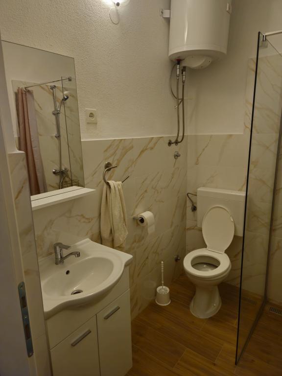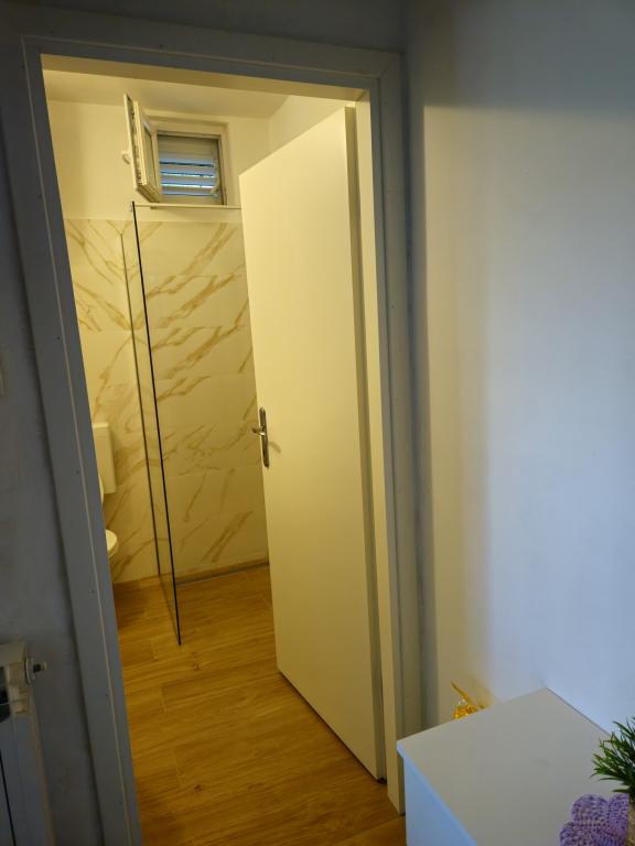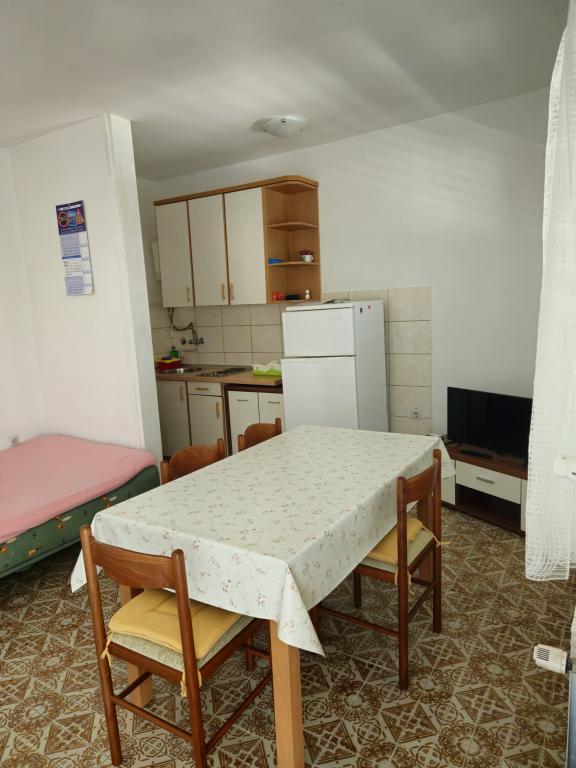 Apartma z veliko teraso. Prijeten ambient v mirnem okolju. Bližina centra in plaže je 5 minut hoje.