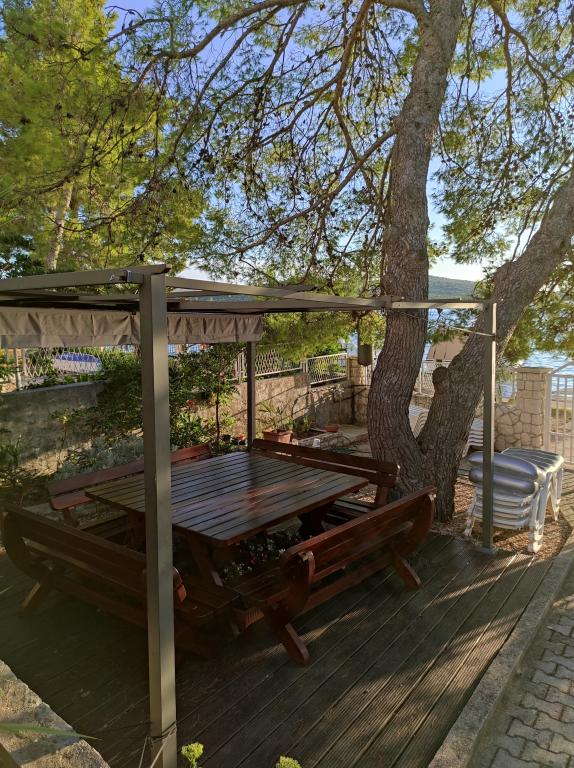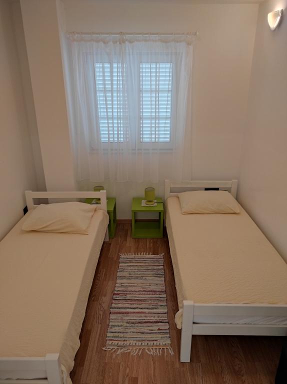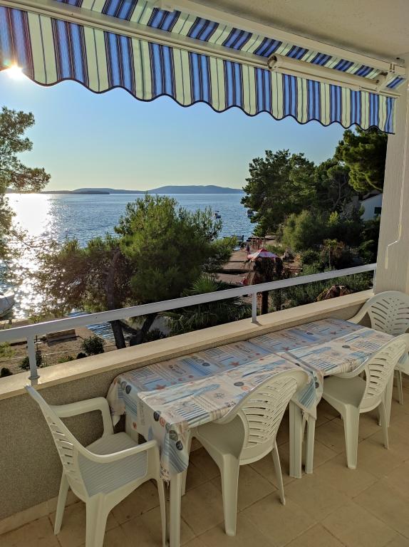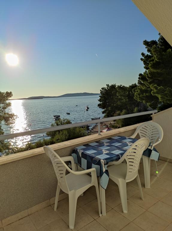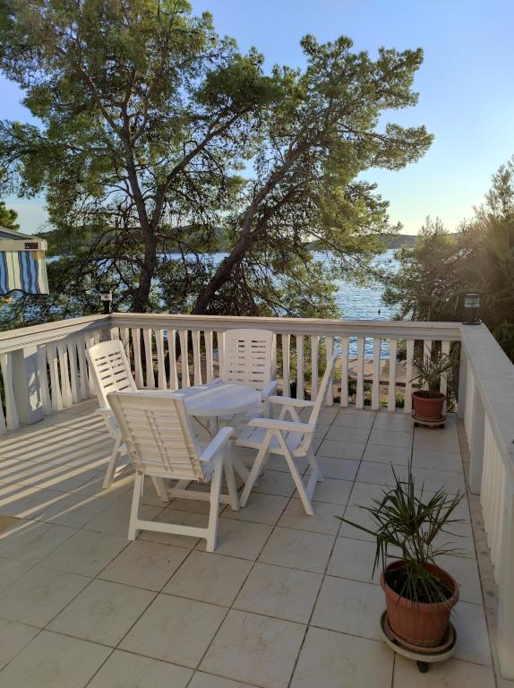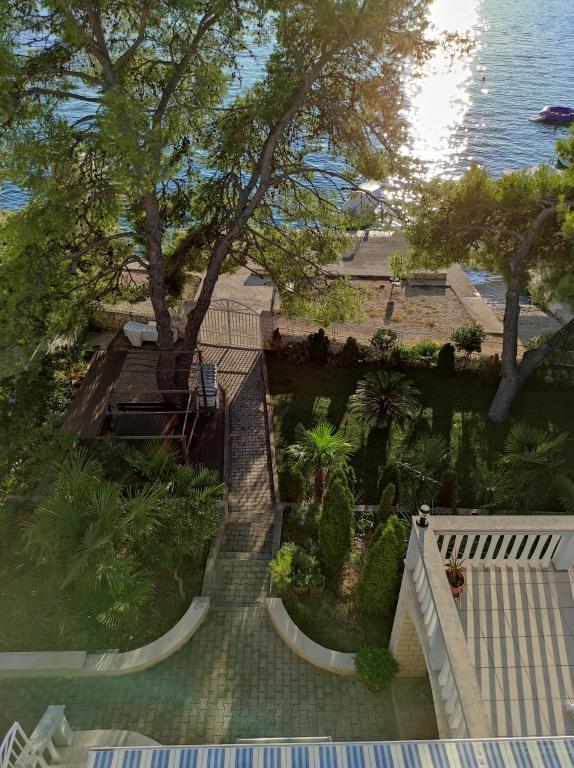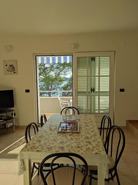 Vila Dradar se nahaja v prvi vrsti ob morju. Ap A10 (A6+A4) Ponujamo vam naš zelo pohvaljeni apartma A10, ki je sestavljen iz dveh nadstropij, ki imata skupno 200 m2 prostora. Prostor je sestavljen iz: V prvem nadstropju je kuhinja, jedilnica/dnevna soba z raztegljivim kavčem, kopalnica, tri spalnice s 6 posteljami, garderobna omara in balkon s pogledom na morje pred hišo. Povezava med obema nadstropjema je notranje stopnišče. V drugem nadstropju je kuhinja, jedilnica/dnevna soba z raztegljivim kavčem, kopalnica, garderobna omara in dve spalnici s 4 posteljami, terasa s pogledom na morje. Na voljo imate tudi garažo, parkirišče za dva dodatna avtomobila, žar, vrt, vrtno pohištvo s tendo, zunanji tuš, ležalnike in senčnike, plažo pred hišo za odrasle in otroke. Imamo prostor za privez čolna. Vse je na novo opremljeno in kategorije 4 **** Cena bivanja je 40 € na osebo/noč. Ob prihodu se plača akontacija v višini enega dneva, v primeru zavarovanja škode. Znesek se vrne ob odjavi.