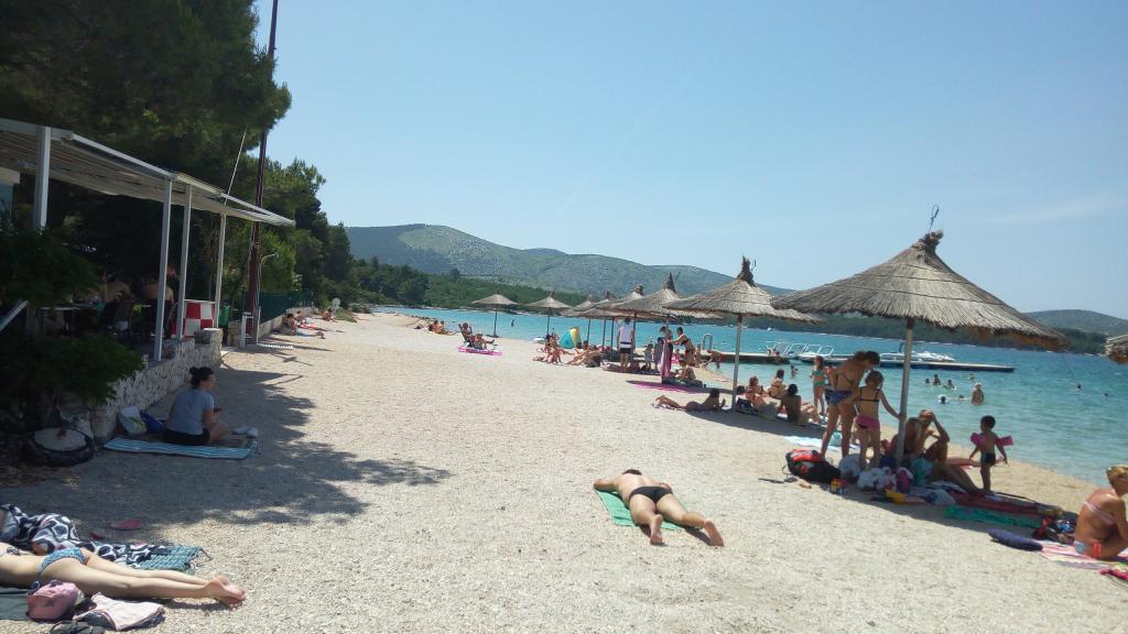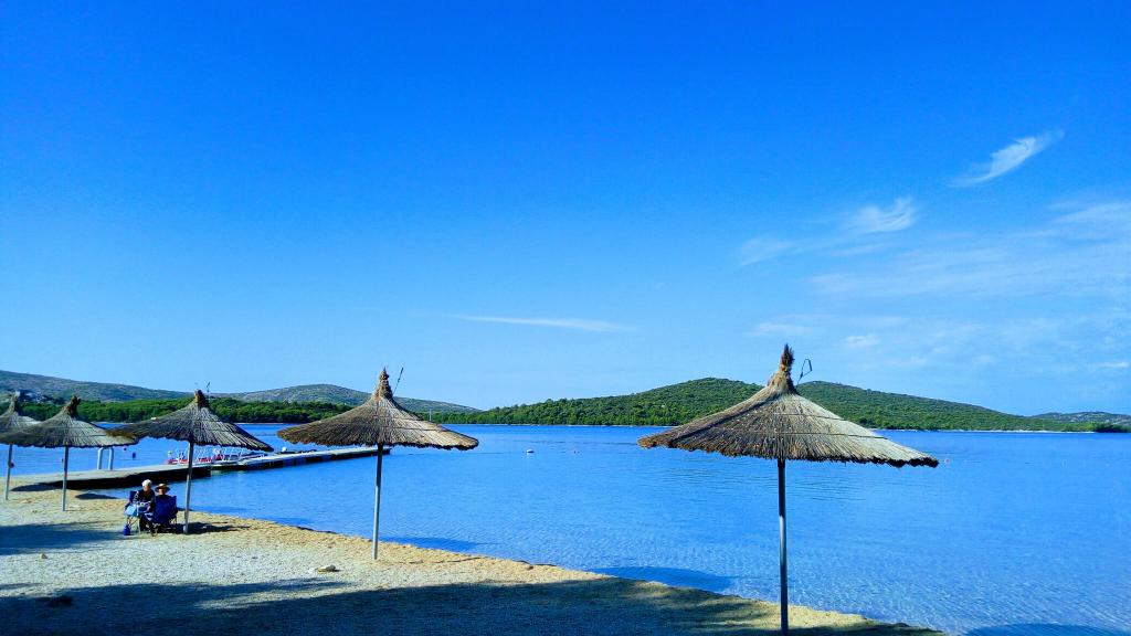 Zelo mirna, nenaseljena, prijetna plaža v zalivu, do katere se lahko pride z električnim vozičkom. Lokacija tik ob plaži, zelo veliko stanovanje v pritličju - zelo težko električno potovanje skozi teraso - samo en korak in prag - imeli smo svoje dovozne poti - tako da je bilo za nas v redu; zaradi naših zelo nenavadnih potreb - invalid z nami je uporabljal ogromno prho v sosednjem kampu na poti od plaže. Stanovanje v slogu 90-ih - morda ne po najnovejši modi, vendar dobro vzdrževano in zelo čisto, klima in polna oprema. In kar je najpomembneje - JOŠKO - zlati mož - neverjetno prijazen in ustrežljiv, s katerim se lahko lepo pogovarjate, pijete, kar kdo rad igra biljard in namizni tenis. JOŠKO - HVALA !!! LEP POZDRAV !!! SE VIDIVA KMALU !!!