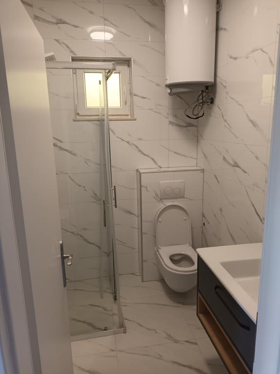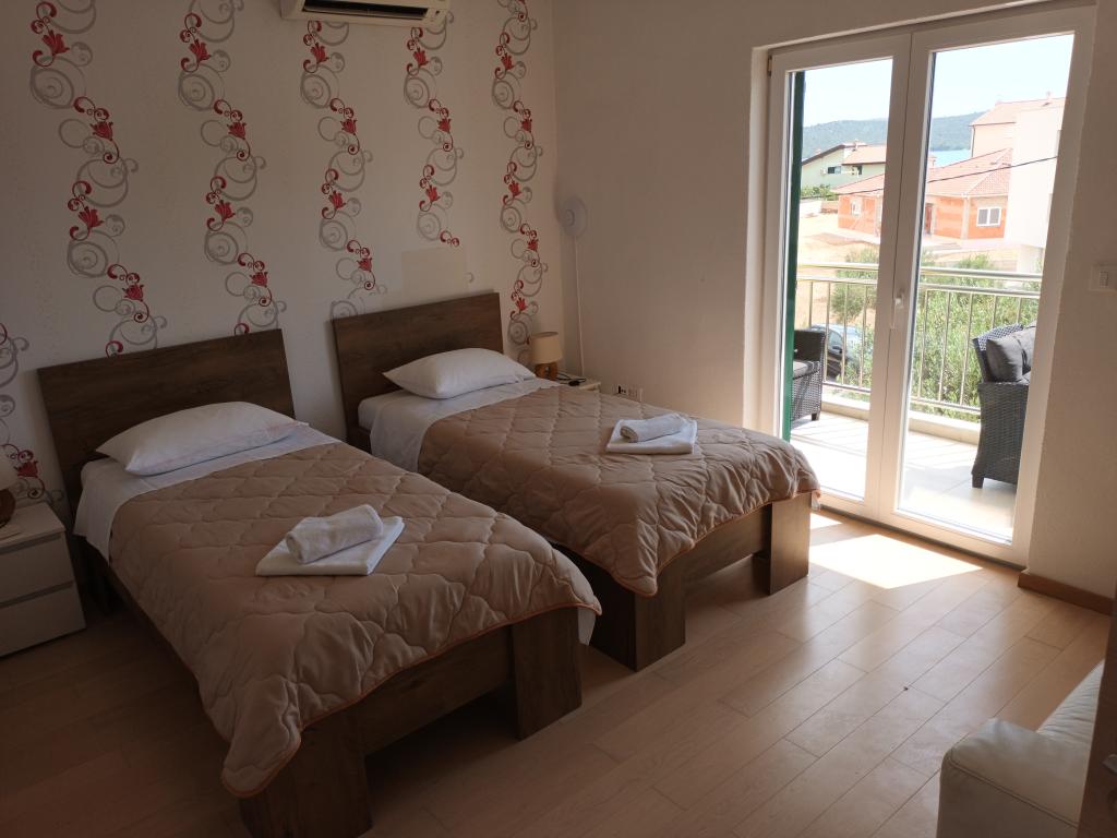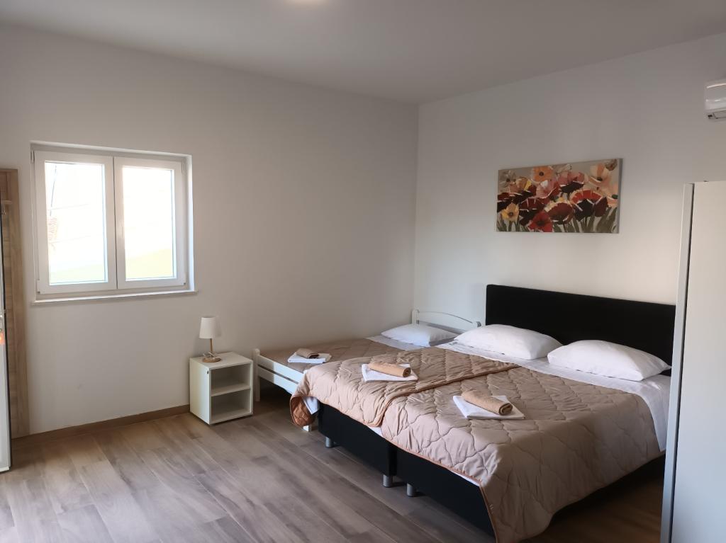 Preberite več Namestitvene enoteApartma A 5+2 ID 79415 se nahaja v prvem nadstropju in ima: dve spalnici, ena z veliko zakonsko posteljo, druga s 3 ležišči za eno osebo, kuhinjo z dnevno sobo v kateri je raztegljiv kavč za dve osebi. oseb, 2x kopalnice in balkon z mizo. Apartma A 3+2 ID 79447 se nahaja v prvem nadstropju in obsega: eno spalnico z veliko zakonsko posteljo + postelja za eno osebo, kuhinjo z dnevno sobo v kateri je raztegljiv kavč za dve osebi, 2x kopalnici in balkon z mizo. Studio apartma A 2+1 ID 79448 se nahaja v pritličju in ima: zakonsko posteljo + enojno posteljo, kuhinjo, kopalnico in teraso z mizo. Studio apartma A 2+0 ID 79449 se nahaja v pritličju in ima: zakonsko posteljo, kuhinjo, kopalnico in teraso z mizo. Akontacija rezervacije znaša 20% akontacije na TRR najemnika, ostalo ob prihodu. Akontacija je nepovratna. Prijava je od 15h, odjava do 10h.