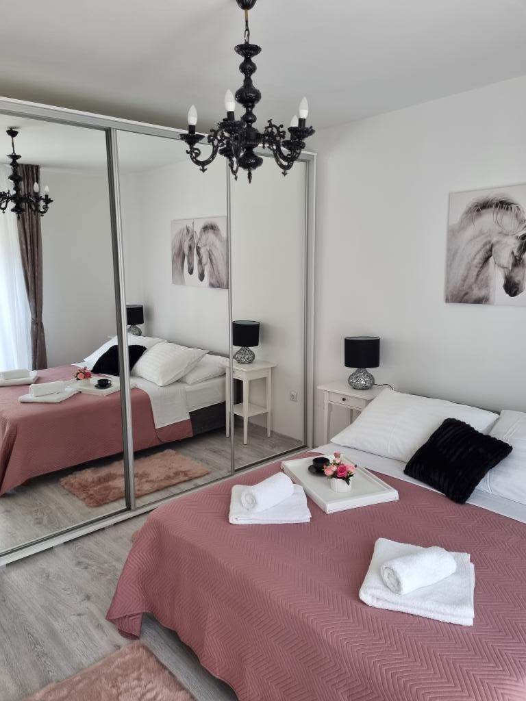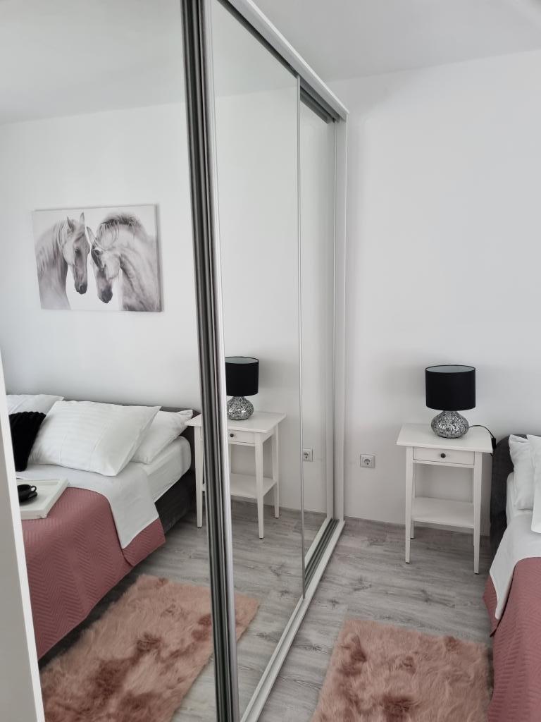 Ta sodobna nastanitev je odlična izbira za tiste, ki želijo raziskati okolico, uživati v nočnem življenju in kasneje priti do prostornega apartmaja v mirnem okolju. Apartma je popolnoma opremljen (pralni stroj, pomivalni stroj, mikrovalovna pečica, aparat za kavo, kuhalnik vode, sušilnik za lase...) ima dve spalnici, kopalnico in ločen WC, veliko dnevno sobo, kuhinjo, jedilnico z izhodom na balkon. Apartma se nahaja v bližini Višnjika, kjer se nahajajo različni športni in rekreacijski objekti, od centra mesta pa je oddaljen približno 10 minut hoje.