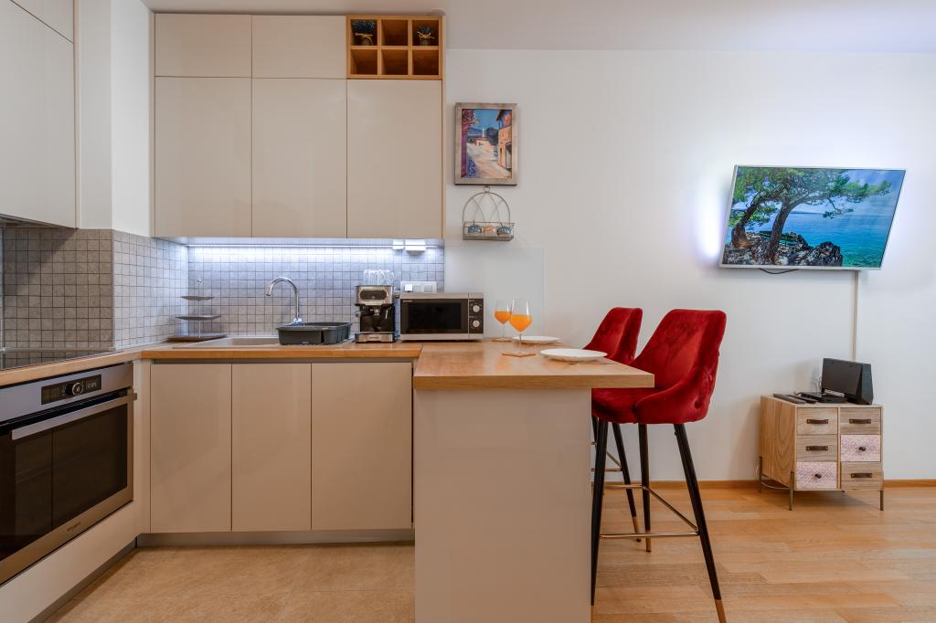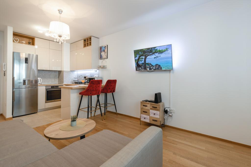 Ta nastanitev je urejena tako, da se bomo tudi sami v njej počutili lepo in varno! Od središča mesta je oddaljen le deset minut hoje, od velikega športnega centra le 200 metrov. Zaradi tega je primeren za vse tiste, ki želijo ostati aktivni tudi na dopustu. Velika nakupovalna centra Lidl in Kaufland sta dosegljiva peš. Apartma ima vse, kar potrebujete za sproščujoče počitnice v čudovitem Zadru. Pozabite na glavobole, ki jih povzroča iskanje parkirnega mesta v urbanem okolju, kot je Zadar; Apartma ponuja lastno parkirišče le tri metre od vašega okna, tako da boste imeli vedno na očeh svojega kositrnega ljubljenčka. Sprostite se v udobnem prostoru, sprehodite se v mesto ali igrajte športne aktivnosti na enem izmed številnih športnih igrišč Centra Višnjik, do katerih pridete v eni minuti. Pobegni iz stanovanja, utrudi se na moderni stezi in teci pod tuš v svoje stanovanje! Dobrodošli v Zadar!