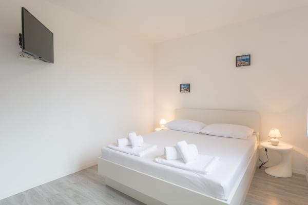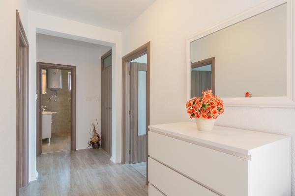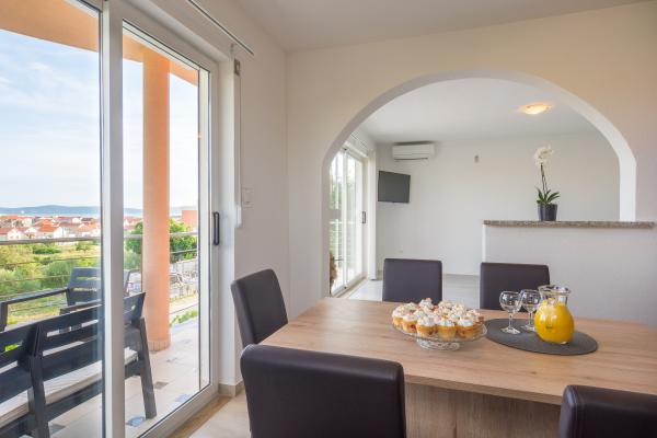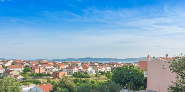 Apartma se nahaja v Zadru v zasebni družinski hiši in ima 90m2 ter veliko teraso s pogledom na morje in otoke. Vključuje brezplačno parkirišče in brezplačno opremo za žar in ločen vhod. Apartma je opremljen s klimatsko napravo, brezplačnim brezžičnim internetom, dvema spalnicama, 3 televizorji, popolnoma opremljeno kuhinjo, straniščem in veliko dnevno sobo. Ena spalnica ima zakonsko posteljo, druga pa ima dve enojni postelji. Apartma se nahaja v slepi, mirni ulici, primeren za počitnice in otroke. Plaža je 5 min vožnje z avtomobilom. Staro mestno jedro je oddaljeno 5 min vožnje. Velik nakupovalni center je 10 min hoje stran od apartmaja ali 1 minut vožnje z avtomobilom.