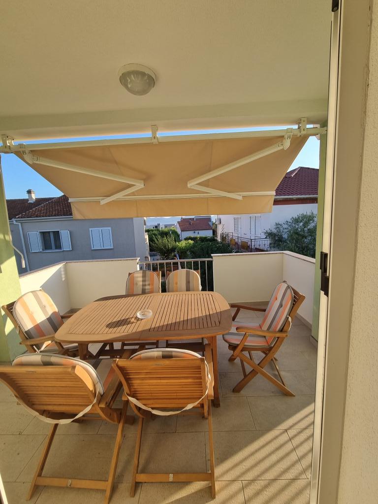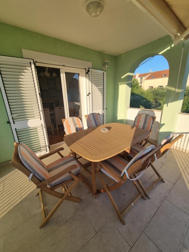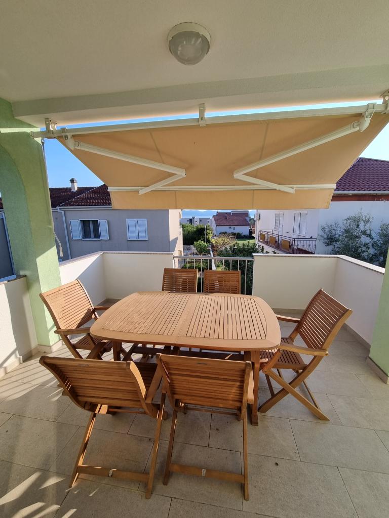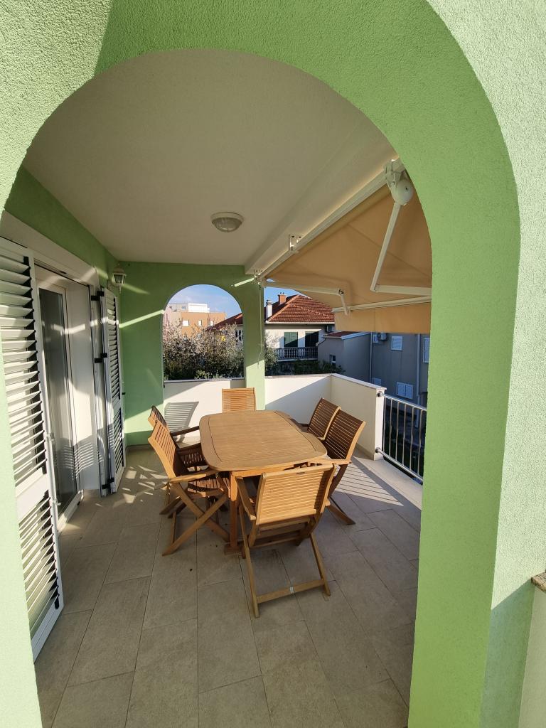 Popolnoma opremljen apartma 1 km od plaže Borik. Nahaja se v hiši, obdani z zelenjem in cvetjem v mirnem delu mesta. Dvorišče je opremljeno z objekti za otroke (nogometno igrišče, trampolin, gugalnice)... Apartma je sestavljen iz 2 ločenih sob. V eni sobi je velika zakonska postelja, v drugi pa 3 ločene postelje...možnost dodatnega ležišča obstaja...
