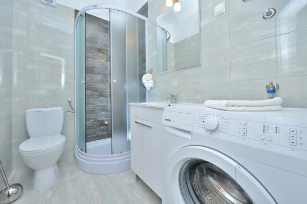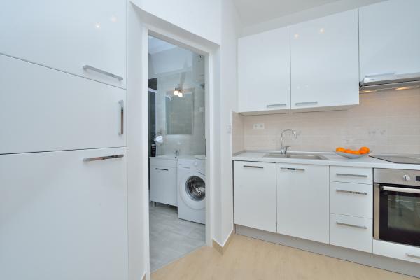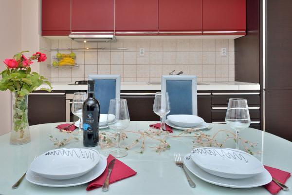 Apartma je sodoben in nov in čist. Bili smo pričakali prijazni gospe Ivanka, in stanovanje smo pozdravili s steklenico sok, kava, mleko, olje in pakiranje čaja in dodatnih stvari, kot detergent, vrečke za smeti in toaletni papir. Fotografije odseva stanje apartmaja, ki vključuje pralni stroj, pomivalni stroj in klimatsko napravo in TV. Apartma se nahaja v bližini centra, tj. Staro mesto (deset minut hoje), v bližini trgovine (pet minut hoje do velikega Konzum) in parkirno mesto. Plaže / morja je dve minuti hoje.