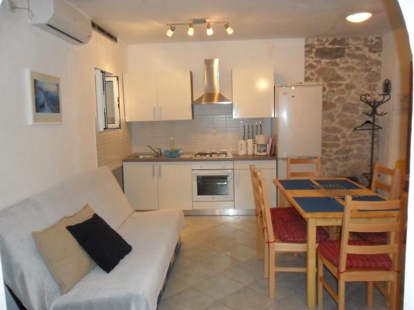 Popolnoma in moderno opremljeno stanovanje v mirnem predelu DIKLA. NALAŽI SE TIK OB MORJU - PRVA VRSTA. s čudovitim pogledom na morje. Stavba se nahaja 10 m od centra in 10 m od plaže in morja. Severozahodno od mesta Zadar, 6 km od starega mestnega jedra in tik ob turističnem območju Puntamika, se nahaja turistično naselje Diklo. Elitno letovišče v bližini 3000 let starega Zadra, znano po svojih vilah in zasebnih hišah ter vso potrebno infrastrukturo za prijeten dopust. V Diklu boste našli lepe in lahko dostopne bazene, ki jih priporočamo družinam z otroki. Prodnate plaže so dobro opremljene z dodatnimi vsebinami za zabavo in rekreacijo, v samem naselju so športna igrišča, izbirate lahko med kopenskimi in vodnimi športi (tenis, košarka, nogomet, jadranje, fitnes, itd.). Če iščete zabavo, je na voljo veliko kavarn in restavracij. Diklo je naselje v osrčju Dalmacije, blizu mesta Zadar. Je idealen kraj za miren oddih brez poletne gneče, še posebej za družine z majhnimi otroki