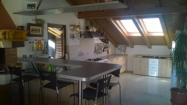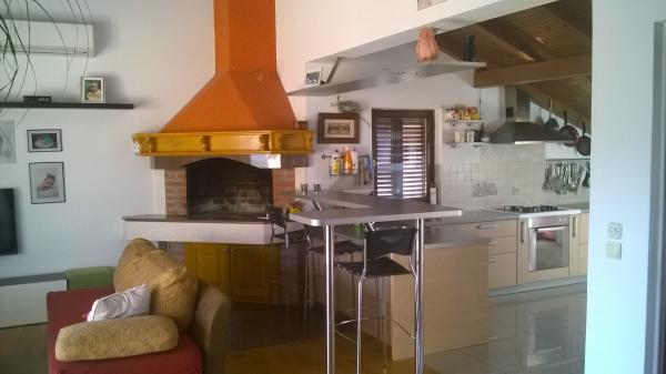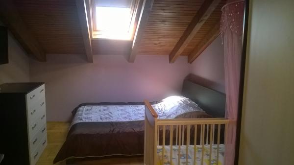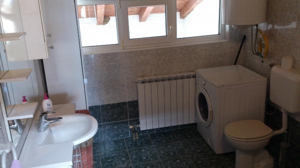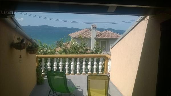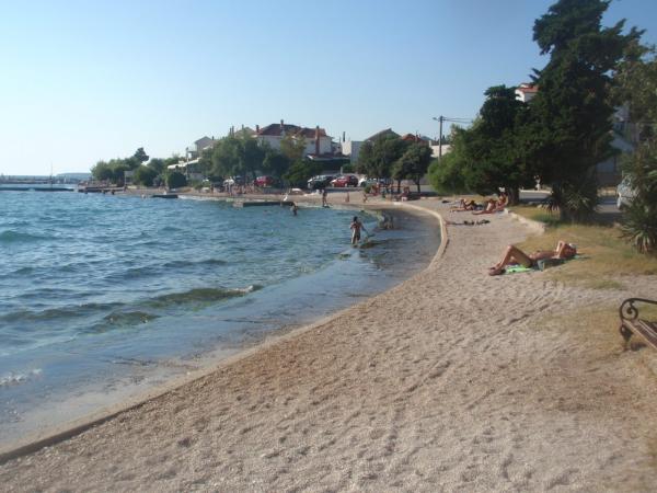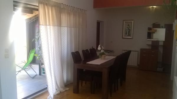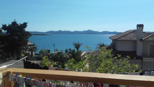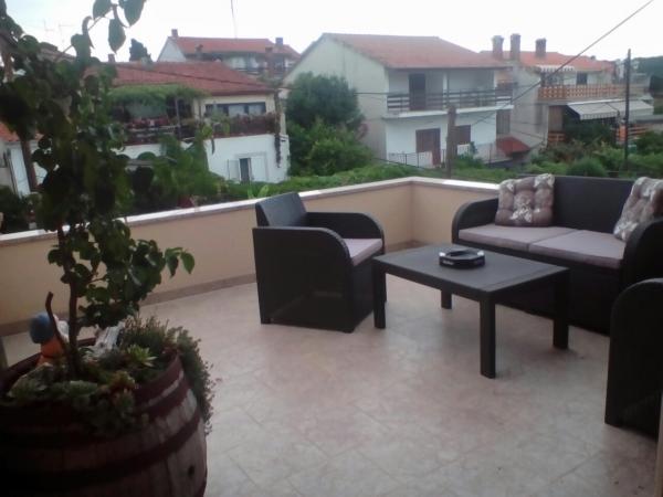Apartma se nahaja v mansardi hiše, 125 m2, 50 m od morja. Ima tri spalnice, kopalnica, velika dnevna soba s kaminom, klima, popolnoma opremljeno kuhinjo in dva velika balkona. V primeru potrebe, obstajajo tudi posteljica in visok stol za otroka. Parkirišče za avto na dvorišču pred apartmaja, hišni ljubljenčki so dobrodošli.
