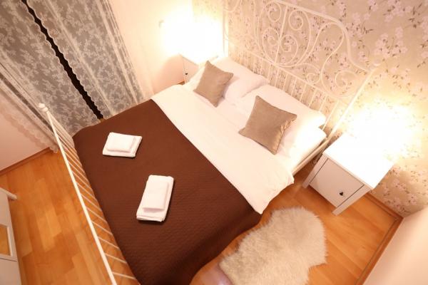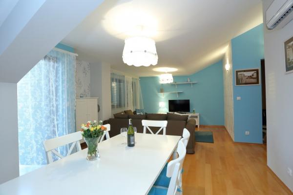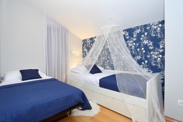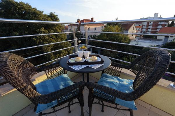 V celoti opremljena vila s tremi apartmaji v mirnem delu Zadra. Vila je idealna za družine z otroki in za tiste, ki želijo biti blizu centra in vse dobrine, vendar na mirni lokaciji. Objekt se nahaja 15 minut hoje od zgodovinskega središča mesta, 10 minut hoje do peščene plaže. V bližini so vse glavne teme: lekarna, pošta, trgovine, restavracije, avtobusne postaje, športni objekti. Vsi gostje so na voljo zasebno parkirišče, ali, kjer je to primerno, transfer iz letališča ali avtobusne / železniške postaje (na zahtevo). Vsak apartma ima tri spalnice, dve kopalnici, kuhinja, dnevna soba in terasa. Vsi apartmaji so opremljeni s potrebnimi pripomočki: jedi, posteljnino, brisače, čiščenje, complimentary toaletni. Vsi gostje lahko uporabljajo zunanji žar.