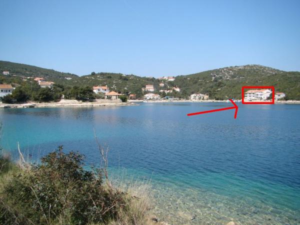 Lepo urejen apartma za 5 oseb, ki se nahaja v mirnem okolju. Nahaja se ob morju in pred stavbo je kamnita in druge plaže (pesek in gramoz) je 800 m. Balkon ponuja pomirjujoč pogled na zaliv in naselja.