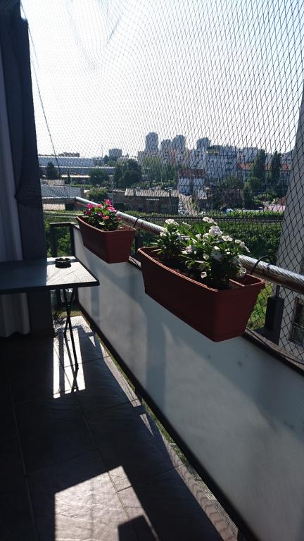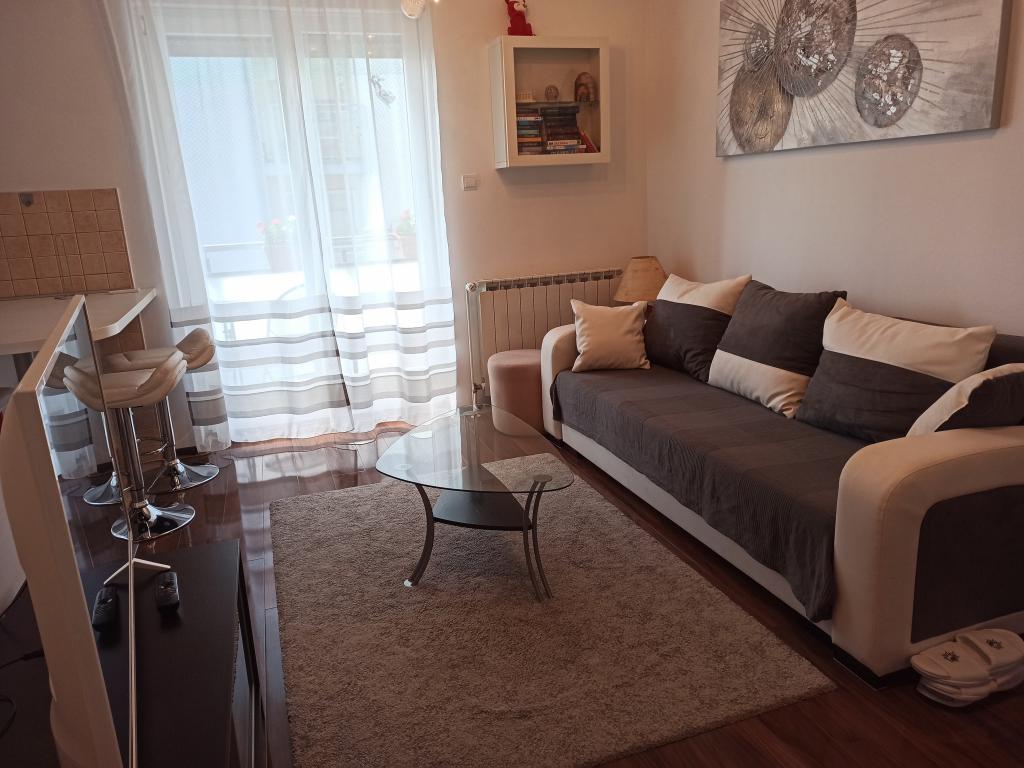 Popolnoma opremljen apartma v 4. nadstropju je sestavljen iz 1 spalnice z zakonsko posteljo 140 x 200 cm, dnevne sobe s kuhinjo, kjer je raztegljiv kavč max. dimenzije 140 x 200 cm, ter kopalnice in balkone. Apartma je idealen za 2 osebi, vendar možnost bivanja do 4 osebe. Garažno parkirno mesto znotraj stavbe. Stavba se nahaja 3 minute hoje od tramvajske postaje (Savska ulica - postaja Vjesnik). Oddaljenost do centra 2 do 3 km ali 5 do 7 tramvajskih postajališč. V okolici so kavarne, restavracije, slaščičarna, otroški park, pošta, cerkev, Lidl, Spar, DM, Erste Bank in še več.