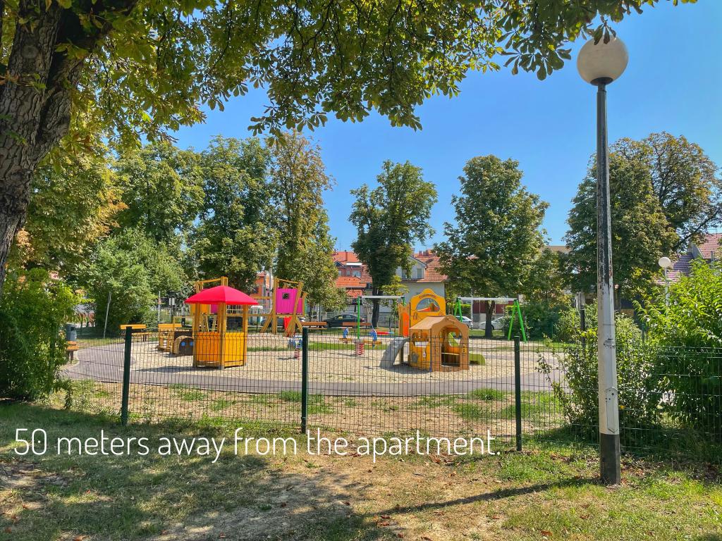 Moderno adaptirano, popolnoma novo stanovanje z lastnim parkiriščem, ki se nahaja v visokem pritličju manjše stanovanjske stavbe s 5 stanovanji, na vrhunski lokaciji v bližini centra mesta, med Ravnico in Borongajem - elitna soseska "Kolonija" - v neposredni bližini. Dinamovega stadiona Živalski vrt. Tudi v bližini tramvajske postaje (2 min. peš; 11 min. s tramvajem do Trga bana Jelačića ali 6 eur z Uberjem.) Bližina bolnišnic: Rebro/Merkur/Dubrava (6-10 min. z avtom) Ena od najlepše in najbolj zelene soseske v Zagrebu, polne otroških igrišč in športnih igrišč. Mir zagotovljen, saj se stanovanje nahaja v nizu družinskih hiš. Če imate majhnega otroka, imamo na voljo tudi otroško posteljico. Kapaciteta: 3 odrasli ali dva odrasla in dva otroka.