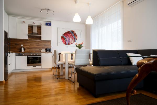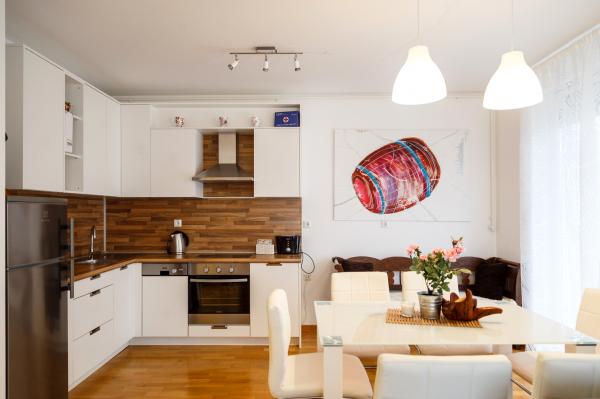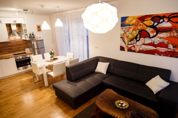ART LAKE APARTMAJI izdelavo 3 luksuznih apartmajev z masažno kadjo in velikimi balkoni, nov popolnoma opremljeno kuhinjo, spalnice imajo dvojni ali enojni postelji, ki se nahaja na glavni lokaciji v bližini centra mesta, in prednost te lokacije je, da se nahaja v mirnem, zelenem okolju, in vendar je blizu centra, ki je le 10 minut. s tramvajem ali z avtomobilom. Pred apartmajev je zasebna zaprto parkirišče in brezplačno. Namestitev A1, A2 in A3 se nahajajo v pritličju, 1. in 2. nadstropju stavbe. Jih je mogoče najeti skupaj, in tudi sprejme do 16 ljudi. Idealna namestitev, saj ima kapaciteto do 16 ljudi, in za vse, ki želijo na kratko pobegniti od mestnega vrveža in uživajte v to oazo zelenja in miru, ampak tudi uživajo naše jezero Jarun, kava, nočno življenje, dobre hrane, kopanje ali morda različne športe. Obdan z zelenjem, pešpoti, poti za tek, kolesarjenje, vodni športi, pa tudi le 50 metrov dve nočni klubi