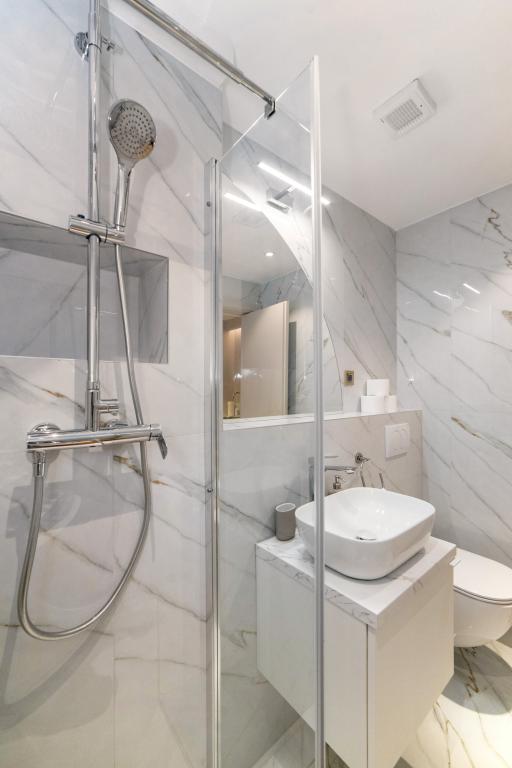Naš objekt se je odprl julija 2025 in ponuja 12 modernih in udobnih apartmajev na mirni lokaciji v samem središču Zagreba. Vsi apartmaji se nahajajo v popolnoma prenovljeni kleti stavbe. Vsaka enota ima zakonsko posteljo, v dveh največjih pa je mogoče s pomočjo zložljive postelje dodatno namestiti tretjo osebo. Vsak apartma ima lastno kopalnico s potrebnimi dodatki in svežimi brisačami za vsakega gosta. Devet studio apartmajev vsebuje kompaktne kuhinje, opremljene s hladilnikom, štedilnikom, mikrovalovno pečico, grelnikom vode in osnovnimi jedmi - idealne za pripravo lahkih obrokov. Preostale enote so deluxe sobe, ki nimajo kuhinje ali hladilnika. Vse enote so moderno opremljene, s klimatsko napravo, talnim ogrevanjem in zvočno izoliranimi okni, kar zagotavlja maksimalno udobje skozi vse leto. Ponujamo enostavno samostojno prijavo s kodo, naši gostitelji pa so vam na voljo ves čas bivanja za vsa vprašanja ali pomoč.