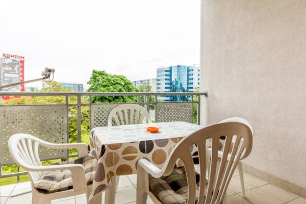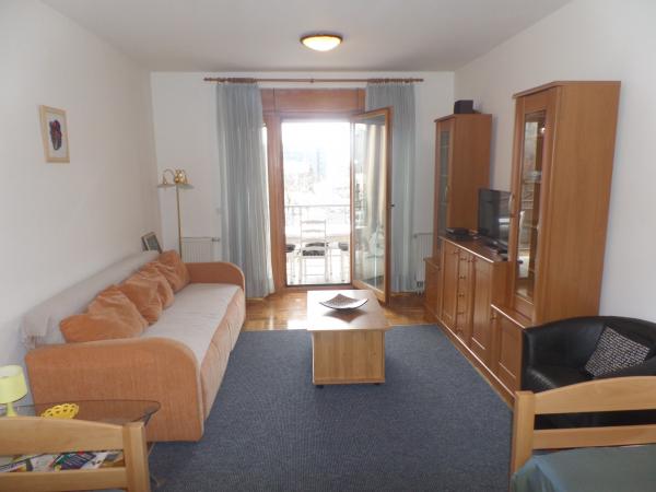 Na novo obnovljeni apartma, v katerem lahko spal 8 ljudi. Apartma ima štiri spalnice, kuhinjo, jedilnico, kopalnico z WC, ločena g sanitarijami in balkonom, ter se nahaja v 4. nadstropju stanovanjske stavbe z dvigalom. V eni sobi sta ločeni postelji v drugi sobi ločeni postelji, v tretji sobi kavčem v četrti sobi in dnevna soba sta dve enojni postelji in kavč posteljo. V dnevni sobi, in drugi dve sobi na voljo za televizijo, z več kot 50 kanalov Popolnoma opremljena kuhinja je hladilnik, štedilnik in pečica, mikrovalovna pečica, popolno kuhinjskih pripomočkov in osnovne potrebščine, kot so kava, sladkor, sol, moka, čaj, olje, kis. Kopalnica ima velik tuš, pralni stroj, sušilnik za lase in toaletni papir, milo in šampon. Za otroke smo pripravili igrače, slikanice, to je otrokom odstranjevanja stol. V bližini objekta se nahajajo trgovine in nakupovalni center City Center One, in avtobus do centra