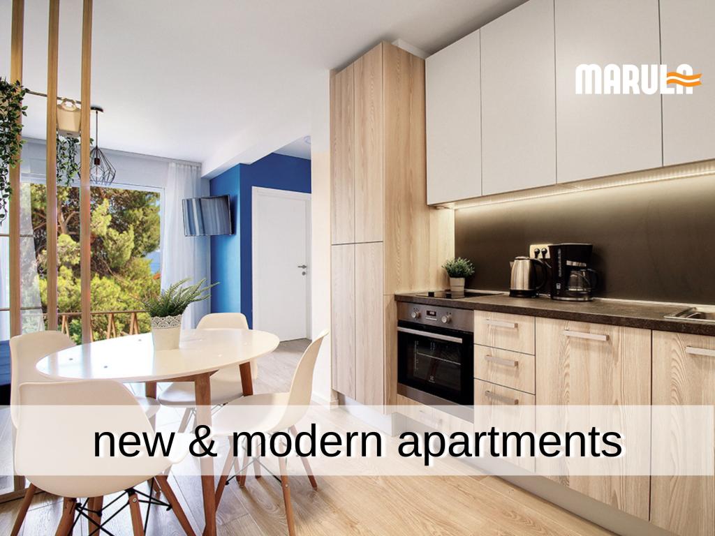 Novo zgrajeni in sodobno opremljeni apartmaji Marula se nahajajo v čudoviti družinski hiši, le nekaj minut hoje do plaže, trgovin in restavracij. Vsak apartma ponuja nastanitev za do 4 osebe, z možnostjo dodatnega ležišča za peto osebo. Apartmaji imajo spalnico z zakonsko posteljo, dnevno sobo s kuhinjo, kopalnico in teraso ali balkon. Apartmaji imajo klimatsko napravo, satelitsko televizijo, brezžični internet in parkirišče. Poleg tega vam je na voljo brezplačna uporaba koles, žarov in pralnih strojev.
