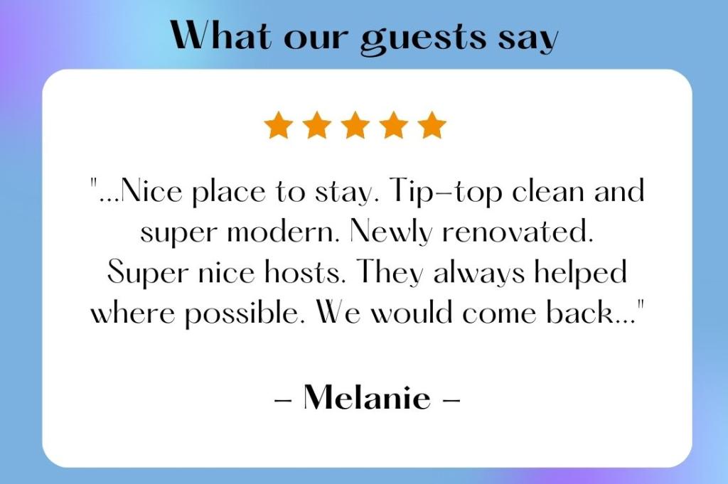 Draga Eva, najlepša hvala za vašo oceno naših apartmajev. To je bilo naše veselje, da ste kot naši gostje. Prijazni pozdravi Družina Ramljak