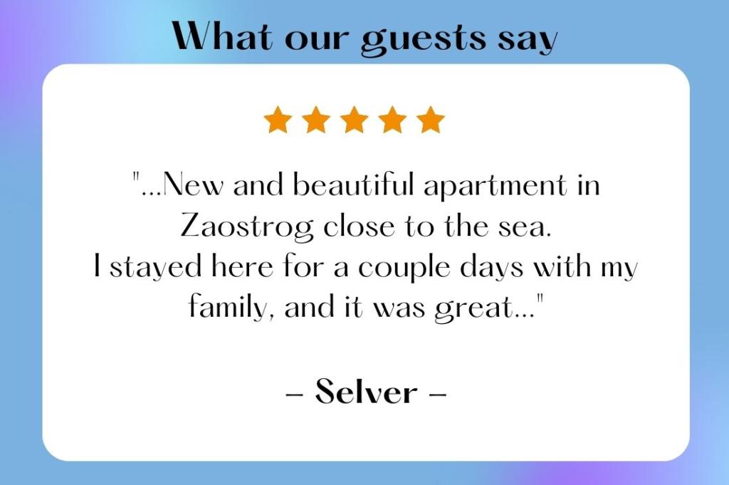 Tukaj sem bil v juniju z mojo družino in vse, kar lahko rečem je: smo imeli popoln oddih! Naše stanovanje je bilo novo, čisto praktična in udobna. Imel je vse, kar smo potrebovali! Kuhinja je dobro opremljeno. Imeli smo neverjetno, dobrodošlico in zelo prijazen gostitelj! Počutila sva se kot doma. Lokacija je odlična v bližini plaže, trgovine in restavracije. Zaostrog je ena izmed najlepših vasi na Makarski rivieri. To je mirno, morje je kristalno čisto in plaže ni gneče. Skupna izkušnja hiše, okolice in storitev je nepozabno počitnice so. Ta kraj je desetkrat bolje kot hotel! Toplo priporočam.