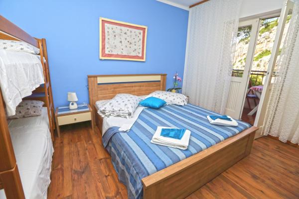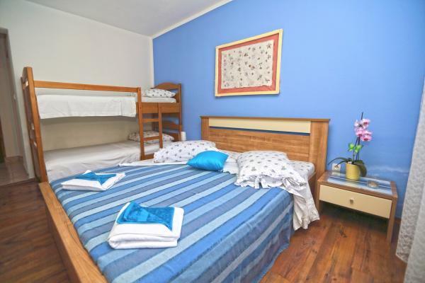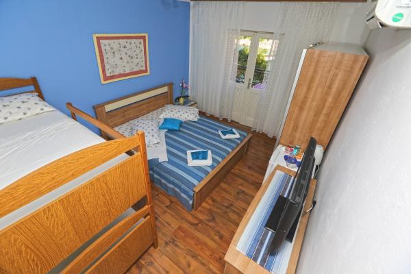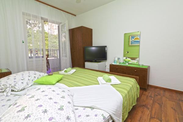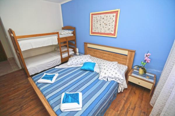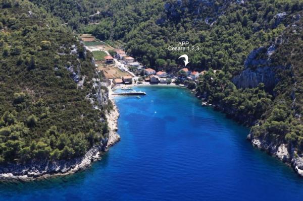 Hiša se nahaja tik ob morju. Objekt je sestavljen iz treh sob z WC. Vsaka soba ima možnost tretje ležišče. Luksuzno opremljen apartma z zmogljivostjo 2 plus 2. stanovanje sestavljajo kuhinja, dnevna soba, spalnica, 2 kopalnici, teraso s pogledom na morje. Ker so apartmaji in sobe se nahajajo na istem nadstropju je možnost kombiniranja večje skupine. Najvišja 8 odrasli in 4 otroci. Apartmaji se nahajajo v drugem nadstropju stanovanjske hiše. Plaža je 10 metrov, kakor tudi v restavraciji. Apartma in dve sobe so klimatizirane, ena spalnica ima stropni ventilator. Imamo tekočo vodo in elektriko. Mi se nahaja na severni strani otoka v sredini otoka. Objekt je obdan z borovim gozdom. V naši drugi hiši, ki se nahaja le 20m ima polpenzion. V naši kuhinji uporabljamo le lokalnih izdelkov, zelenjave, medu, vina in drugih proizvodov iz naše družinske kmetije. Pridite nas obiščete in bomo poskušali preživeti prijeten dopust.