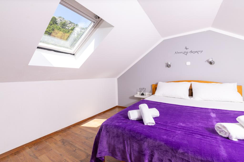 Popolnoma opremljen apartma v mirnem zalivu na severni strani otoka Hvar. Apartma vsebuje sobe z zakonskimi posteljami, kuhinjo, opremljeno z vsemi potrebnimi aparati in pripomočki, kopalnico s tušem, teraso s čudovitim pogledom na morje. Brisače in posteljnina so vključeni v ceno. Plaža se nahaja ob apartmaju in je izjemno primerna za otroke. V zalivu Vela Stiniva boste uživali v kristalno čistem morju, vonju borovega gozda in soncu, ki je v poletnih mesecih ves dan. Zaliv Vela Stiniva je oddaljen 20 km. V zalivu je eno od dveh plezališč na otoku Hvar. Hiša, v kateri se nahaja apartma, se nahaja tik ob morju in restavracija, kjer lahko uživate v dalmatinski hrani in lokalnem vinu.