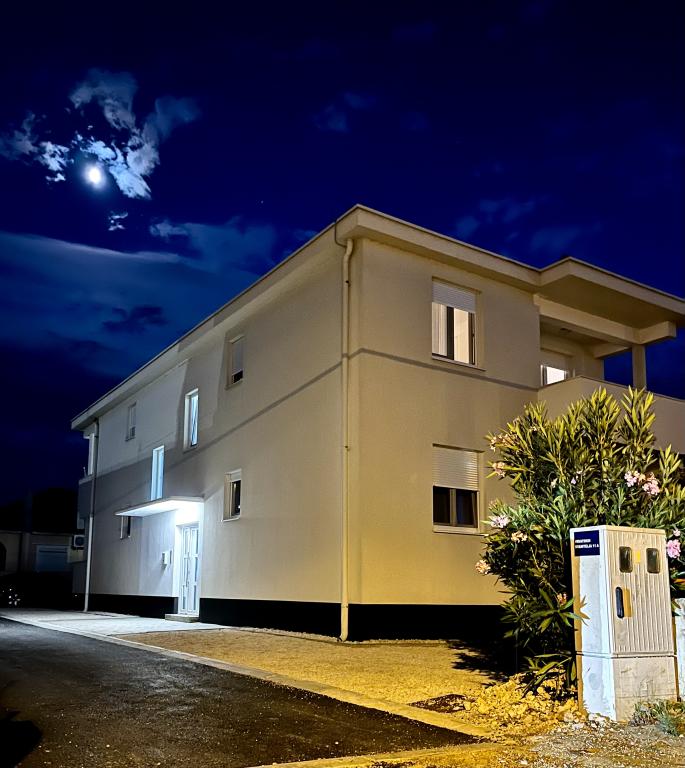 Apartma Family se nahaja v družinski hiši s 4 namestitvenimi enotami, v mirnem delu mesta. Nahaja se v prvem nadstropju hiše, obnovljena je bila spomladi 2022. Je v neposredni bližini TZ Zaton, trgovin, otroškega igrišča, gostilne in pekarne. Peščene plaže, ki so odlična izbira za družine z otroki, so oddaljene 15 minut lahke hoje ali 1 minuto vožnje z avtomobilom. Apartma je sestavljen iz: spalnice z zakonsko posteljo in pomožnim ležiščem, kopalnice s tušem, kuhinje, dnevne sobe in zunanje pokrite terase. Poleg navedene opreme so gostom na voljo tudi Smart TV, mikrovalovna pečica, toaster, sušilnik za lase, pralni stroj in možnost zunanjega žara. Parkirišče je zagotovljeno na dvorišču objekta. Apartma je odlična izbira za družino z enim ali dvema otrokoma. Objavljene fotografije prikazujejo dejansko stanje in če menite, da nekaj ni prikazano in je za vas pomembno, nas kontaktirajte, da vam posredujemo dodatne informacije ali posredujemo dodatne fotografije.