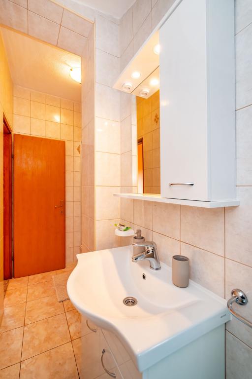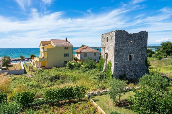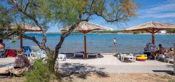 Priporočilo za ga. Mirjana in njena namestitev. Z možem sva preživela 7 čudovitih dni. Gospa je nevsiljiva, zelo nežna in ustrežljiva, prava hostesa. Namestitev v popolnoma opremljenem studiu je bila odlična, vse je bilo urejeno in čisto. Gospodinja nas je pogostila s svojimi domačimi paradižniki in kumarami (kot kaže, se ji je usmilila naša usoda, kajti v naši hiši, česar niso uničili vsiljivci in sonce, je uničil nedavni žled). Dovolj prostora za parkiranje. Lepo urejeno dvorišče. Najbližja plaža je dobesedno nekaj korakov od hiše. Plaža je urejena, zunanji del je betoniran, v morju je pesek. Na voljo sta tudi 2 tuša s toplo vodo. Trgovine, restavracije, cerkev... vse je blizu. Avta sploh nisva rabila. Prižgali smo ga le, ko smo šli na koncert v Vir in Aqua park v Biogradu.