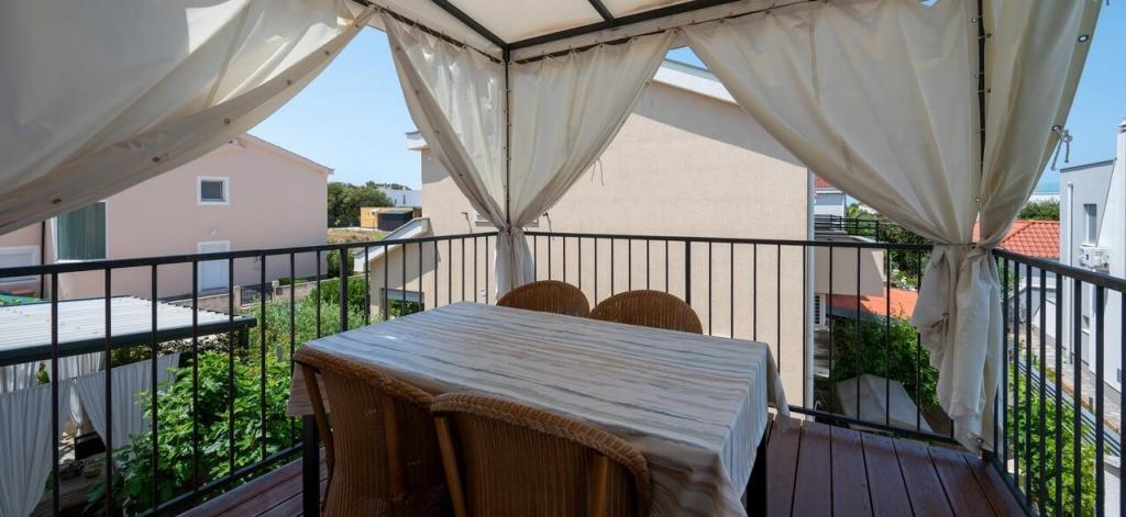 Popolnoma opremljeni apartmaji - nahajajo se v mirnem delu Zatona, v bližini mesteca Nina, obdani z zelenimi borovci. Na razdalji 70 m je morje, na razdalji od 100 m do 150 m pa je po želji peščena ali prodnata plaža. Peščeni zaliv je primeren za otroke in neplavalce, v bližini pa je tudi zdravilno blato. Dva apartmaja se nahajata v pritličju hiše, dva pa v prvem nadstropju hiše. Vsak apartma ima ločeno teraso/balkon. Gostom je na voljo kamin, zunanji tuš in parkirišče. Če ste ljubitelj kolesarjenja, dolgih sprehodov ob obali, po gozdu, ogledov bogate kulturne dediščine, obiskov nacionalnih parkov ali zabave v bližnjem turističnem kraju – vse to vam je na voljo pri nas. Center mesta, kavarne, gneča, promet so oddaljeni 20 minut hoje od apartmaja, tako da sta mir in počitek popolnoma zagotovljena. Veselimo se vašega prihoda!