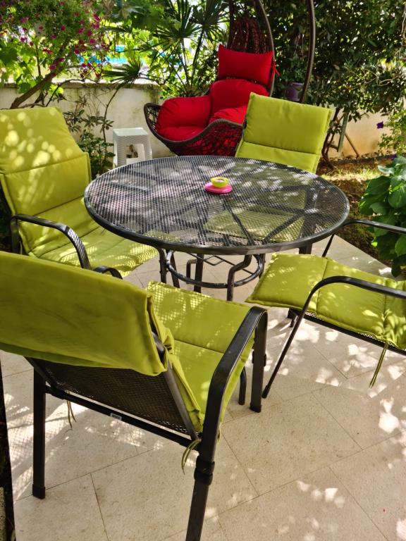 Odlična lokacija za spočiti!! Lastniki so zelo prijazni, nevsiljivi, vedno pripravljeni pomagati. Apartma je zelo čist, zelo lepo opremljen, terasa čudovita z naravno senco! Plažo je dobesedno “pred nosom”. Priporočam vsem, ki so željni dopustniškega miru … In krasnih, gostoljubnih lastnikov! Mi še pridemo!
