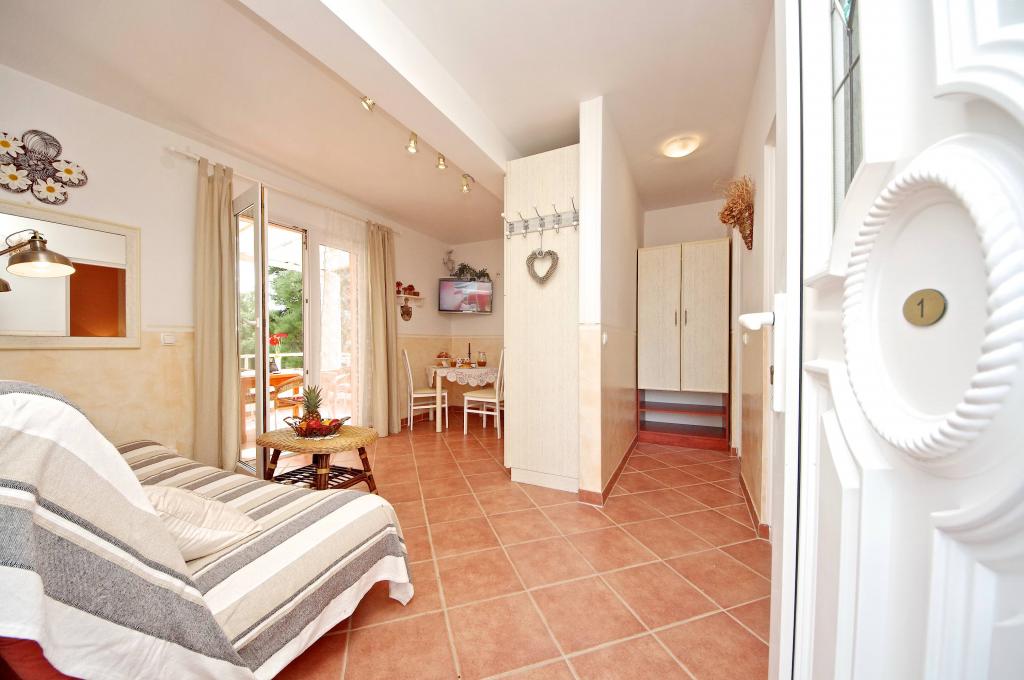 Turistična taksa je vključena v ceno.Znesek akontacije se vrne le v primeru odpovedi rezervacije vsaj 60 dni pred prihodom. V primeru nepravočasne odpovedi ali neprihoda se akontacija zadrži. Gost je dolžan obvestiti o spremembi datuma prihoda ali o poznem prihodu (po 21.00 uri). V primeru poznejšega prihoda od rezerviranega datuma (naslednji dan) ali predčasnega odhoda je gost dolžan plačati znesek za celotno obdobje rezervacije. Svetujemo vam, da sklenete polico odpovedi pri zavarovalnici po vaši izbiri. V primeru škode na premoženju je gost dolžan prijaviti morebitno škodo, ki jo povzroči sam. Gost je dolžan povrniti povzročeno škodo. Nismo dolžni nositi odgovornosti v primeru tatvine, nesreče ali škode na premoženju ali osebah, niti ne prevzemati odgovornosti za škodo, ki jo povzročijo grom, toča, požar ... Gostom svetujemo, da svojo lastnino zavarujejo pri zavarovalnici. Hišni ljubljenčki v apartmajih niso dovoljeni.