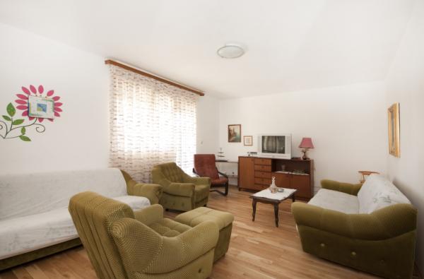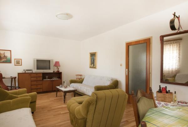 Hiša na otoku Zlarin se nahaja v mirnem mestu, stran od plaže 150 m od centra 400 m. Hiša je v dveh etažah obdan z lastnino 1000 kvadratnih metrov, v katerem oljkami, vinsko trto, fige .... In v pritličju je velika dnevna soba, kuhinja ločena vrata z dnevnim prostorom in majhno kopalnico. Dnevna soba odpre na veliko teraso 35 kvadratnih metrov ročno izdelana lesena miza za 7 oseb z dvema klopi, gugalnica in vrtno pohištvo in ležalnik. Terasa je pokrita. V prvem nadstropju so tri spalnice, ena velika zakonska postelja in ena postelja, srednje velika soba z zakonsko posteljo in enojno posteljo in majhno sobo z eno posteljo. Vse tri sobe imajo dostop do velikega zgornjo teraso s pogledom na morje. V zgornjem nadstropju hiše, kjer so prostori klimatiziran. Brezplačen WI-FI. Na voljo je tudi kopalnica s kadjo, WC školjko in umivalnikom. V hiši je zunanji tuš s sončno toplo in hladno vodo.