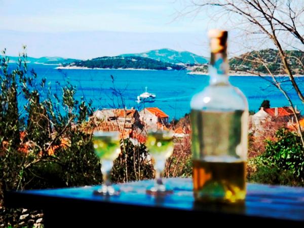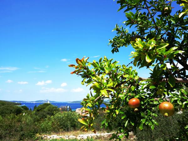 Hiša, v kateri lastnik ne prebiva. To se nahaja na otoku koral, na katerih so prepovedane avtomobili, saj je to ekološko oazo daje poseben čar. Na otoku je mogoče doseči z ladjo iz Šibenika 25 min. Ali iz Vodic, večkrat na dan. Od hiše do centra mesta ali pa do plaže se lahko doseže v manj kot 10 min. hoditi. Hiša se ponaša mir in popolno intimnost na zasebni parceli z vrtom od 1200m2. Z 100m2 veliko, terase lahko uživate v razgledu na morje in spektakularne sončnih zahodov, in z vonjem zelišč. Ali imajo zanimive dogodke v. Hiša je sestavljena iz več funkcionalnih objektov, katerih zunanji izgled prevladuje kamen. Bivalni prostor je sestavljen iz: dve spalnici (ena z zakonsko posteljo, medtem ko je druga zakonsko posteljo in eno enojno posteljo), dnevna soba z majhno jedilnico in dvema dodatnima ležiščema, kuhinja, hodnik in kopalnica. Hiša kot zaseben objektov se nahaja več: letna kuhinja, zunanji WC in tuš, in tam je žar in zunanji umivalnik.