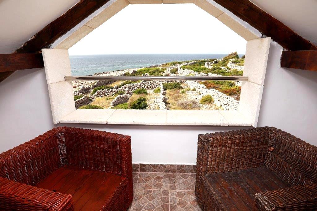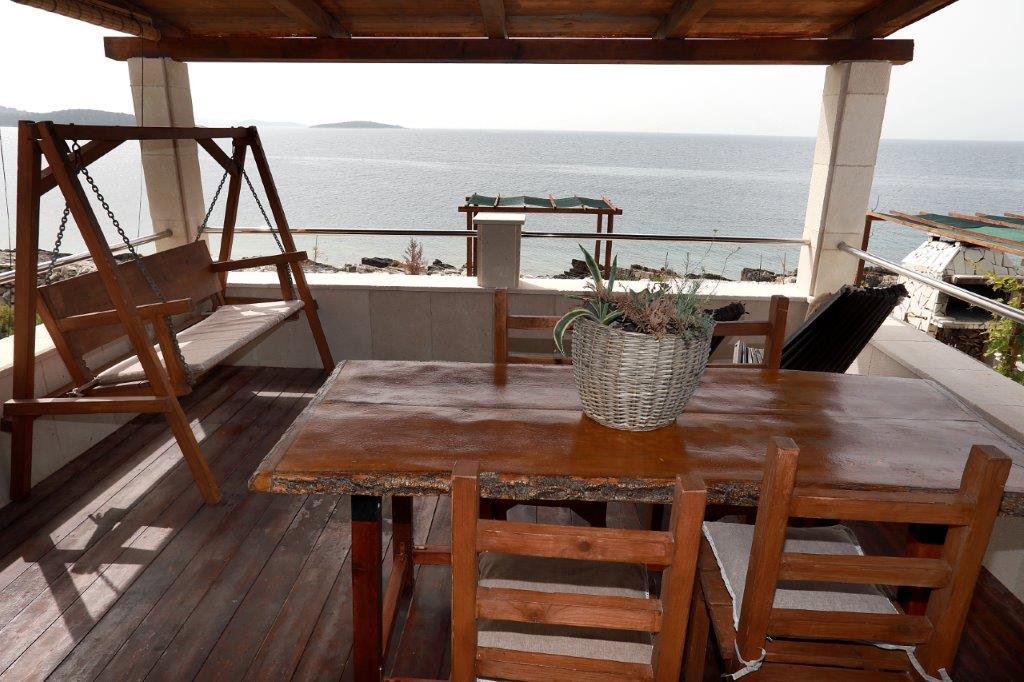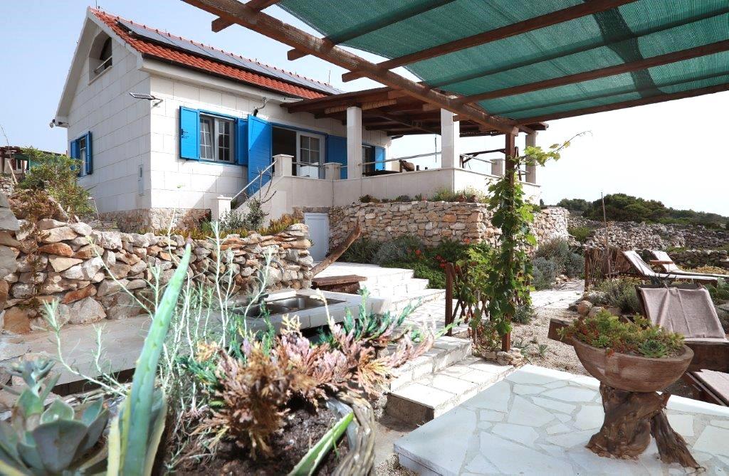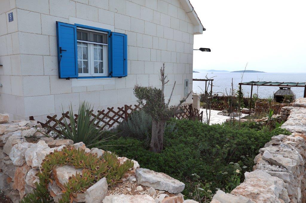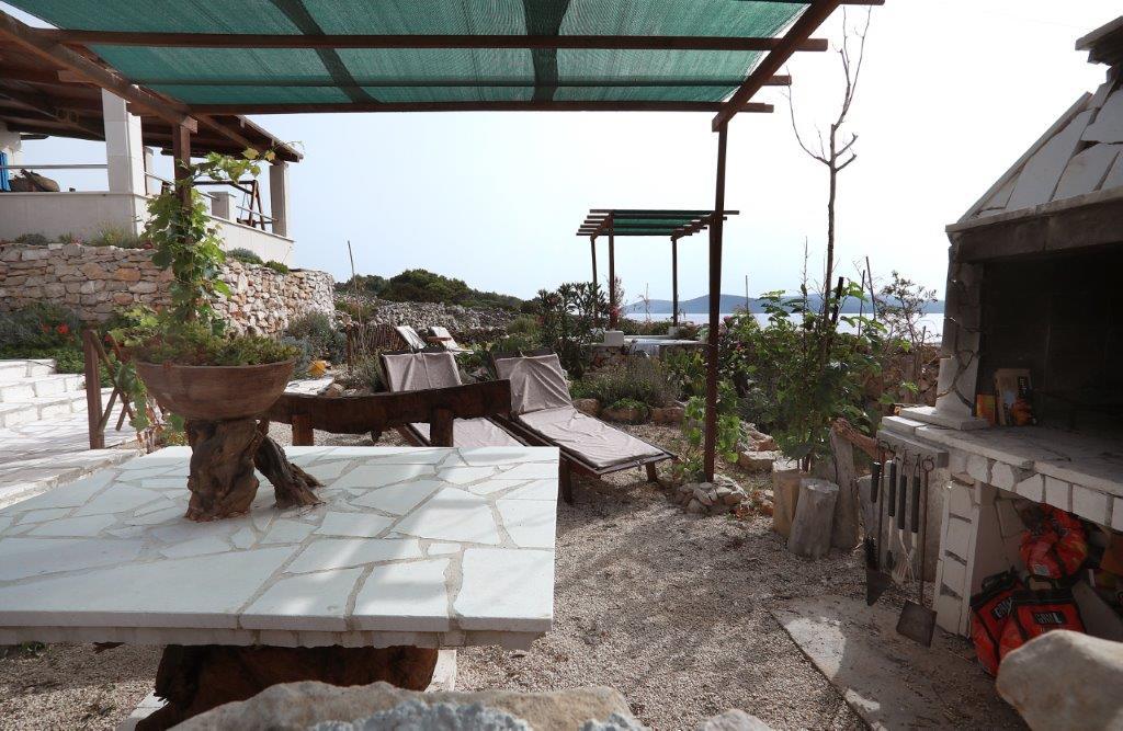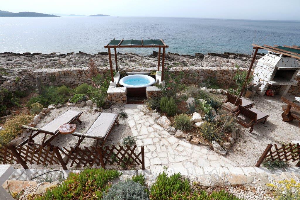Morje in sonce najdete kjerkoli na Jadranu, če pa se resnično želite sprostiti brez mestnega hrupa in mimoidočih ob najlepših sončnih vzhodih in zahodih, potem je ta otok v bližini Trogirja idealen za vas. Čarobna počitniška hiša, tik ob morju, ki jo napaja sončna energija, poleg morja gleda tudi na naravne skale, ki jih je oblikovala tisočletna igra valov, in otoke Drvenik Veli, Hvar in Vis. Ta majhna, pravljična hiša je namenjena vsem, ki ljubijo naravne lepote, veliko dišečega zelenja, in je sestavljena iz kuhinje z jedilnico in dnevno sobo, kopalnice in dveh spalnic. Prvo nadstropje je nizko podstrešje - soba, stranišče in balkon, pred hišo pa je terasa z ležalniki, s katere lahko uživate v čudovitem razgledu na morje. Tisti, ki radi pečejo na žaru, imajo na voljo velik zunanji kamin z mizo in klopmi, na voljo pa je tudi zunanji tuš. Zato, če želite priti na kraj, kjer čas teče počasi, in če iščete tišino, modro morje in nedotaknjeno naravo, pridite k nam. :)