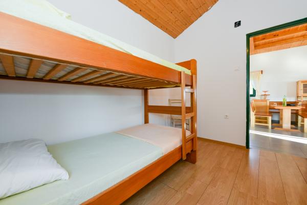 Lepa hiša v Veli Iž, v prelepo pokrajino na parceli 6000m2. Hiša ima 50 m2, z električno energijo z generatorjem, vodo s kopalnico, z lepo kuhinjo, dve spalnici, ena z zakonsko posteljo in sobo s pogradom. Hiša ima kopalnico s tušem, teraso s pogledom na morje. Hiša je tik ob morju, tako da zasebna plaža je le 10 metrov. Hiša je od središča vasi, ki se nahaja 2, 5 km. Lega hiše je v lepem sredozemskem okolju, okoli hiše je oljčni nasad in se počutite, kot da ste v malem raju. Idealno za preživljanje sproščujoče počitnice stran od zanosom mesta. To je zelo tih, idealen za ljudi vseh starosti in za vse starosti. Občutiti vonj morja in milijonov zvezdo na nebu samo še biti tam. Hiša se lahko pripeljete z avtomobilom na pol poti, in na pol poti peš. Obstaja možnost, da se gostje prevažajo z ladjo, ki je od Veli Iž leži samo eno uro.