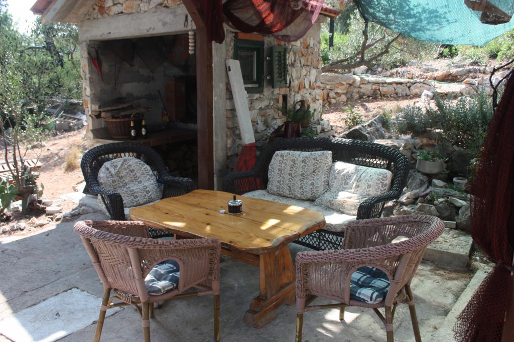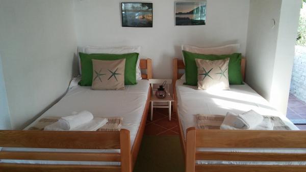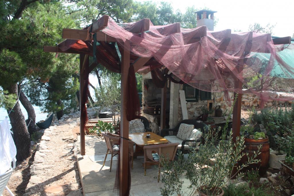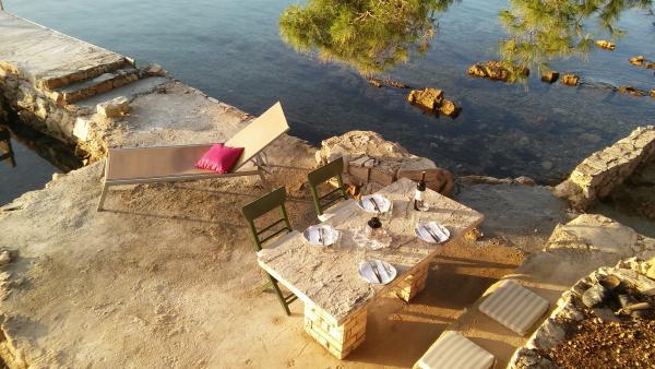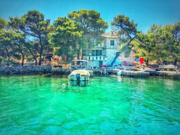 Ponujamo vam namestitev v tradicionalni ribiški hiši na zasebnem otoku, le 800 metrov od glavnega otoka Ugljan, 2 metra od morja, z lastno obalo za privez, 4 terasami za sončenje in počitek, notranjim in zunanjim dimnikom, notranji in zunanji tuš. Dostop do hiše je možen samo s čolnom. Je majhna, a udobna ribiška hiša v dvojčku tik ob obali in edina hiša dvojček na celem otoku. Razmere so skoraj robinzonske, z določenim udobjem, kot je elektrika iz sonca, ki poganja hladilnik, televizijo, osvetljuje hišo in polni elektronske naprave, saj je napetost v hiši 220 voltov. Hiša ima tudi internet. Privlačen je za tiste, ki imajo radi samoto in bivanje v naravi. Uživajte v kamniti hiši v senci borovcev, ob modrem morju, sončnem zahodu, morju, ribolovu in vseh naravnih lepotah majhnega otoka. Pobegnite stran od sveta in sprostite vse čute v nedotaknjeni naravi.