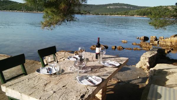 Na podlagi prejšnjih izkušenj smo se letos odločili, da se vrnemo v Veli Školj. In smo več kot srečni, da smo se tako odločili. Tu je nekaj razlogov: 1) mirna lokacija na zasebnem otoku, brez vodnega skuterja 2) dovolj prostora za zasedbo 2 družin 3) čisto in dobro opremljeno za robinzonske standarde 4) lep čoln na voljo ljubiteljem ribolova 5) neverjetni gostitelji Mile in Sneža, ki se bodo potrudili, da bodo vaše počitnice nepozabne. Če ste navdušen ribič, si obvezno privoščite svojo opremo - lahko s pristanišča lovite brancina in orata (orada) ali se s čolnom odpeljete na bližnja mesta.