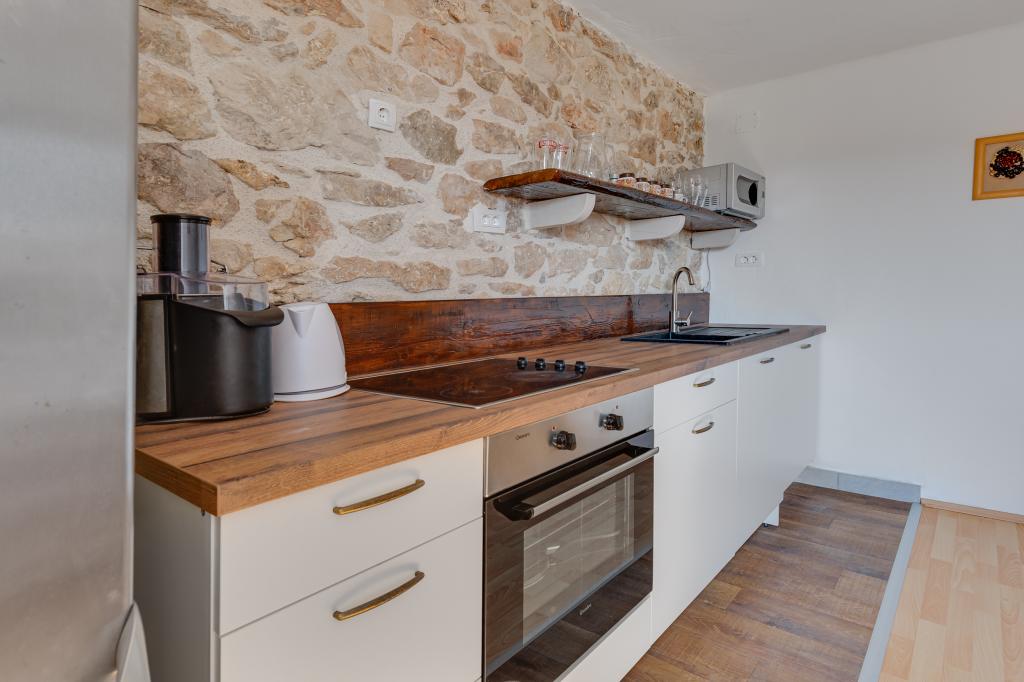 Očarljiva, zgodovinska kamnita hiša, stara 150 let, se nahaja na otoku Ugljan v mirnem kraju. S čudovitim pogledom na morje ta stara kamnita hiša nudi miren pobeg. Doživite popolno mešanico rustikalnega šarma in udobja z udobnimi sobami, dobro opremljeno kuhinjo in prostorno teraso za uživanje v slikoviti okolici. Potopite se v lepoto narave, raziščite raznolike plaže in ustvarite nepozabne spomine v tej idilični stari kamniti hiši.
