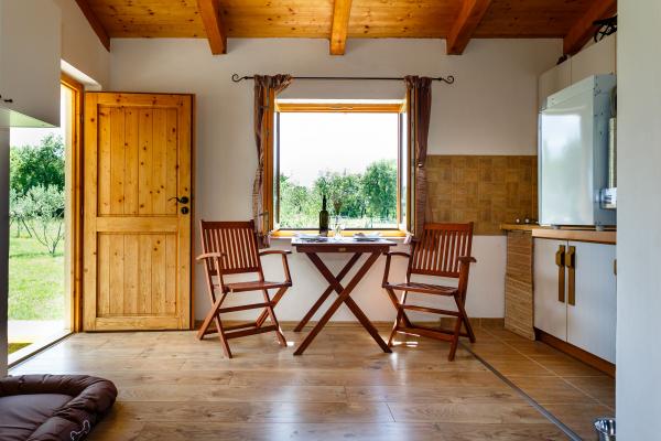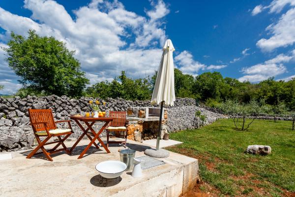 Če hočeš mir, tišino in samoto, v čudovitem naravnem okolju, potem je naša prijetna koča cev za vas. Izklopite iz vsakodnevnega hitenja in preživeti v sožitju z naravo! Hiša je obdana z idilični vrt z oljkami. Na parceli je žar za pripravo posebnega in najbolj slasten poletni obrok. V pripravljenega obroka lahko uživate v doma ali na terasi 9 m2, kjer si spočijete oči na zelenje, ki jo obdaja. Stran od poletne gneče, vendar le 2 km od plaže. Razvajajte se! Hiša je opremljena s hladilnikom, plin, plinski štedilnik, žar. Tubi je Robinson objekt, kar pomeni, da je brez elektrike, deževnico iz rezervoarja in se mora porabiti racionalno. Tuš je prenosni, z vodo pod pritiskom in bodo imeli priložnost resnično tuš, skoraj kot doma. Kopalnica je znotraj kampa, cisterna je vpisana ročno. Živo Robinson! Ob prihodu vas bo pozdravil pijačo dobrodošlice in zemljevid otoka.