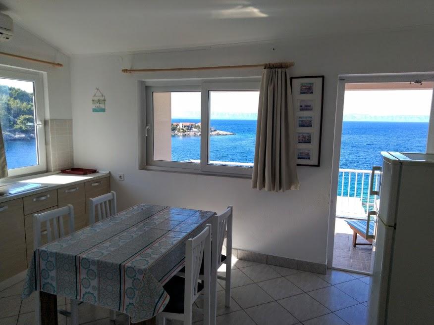 Apartma je na zelo mirni lokaciji, v majhnem zalivu z zasebno plažo, ki je oddaljena cca 20m po stopnicah. Ogromna terasa in pogled s terase je čudovit. Nekaj minut vožnje do Vele Luke. Apartma je prostoren, čist, gospa Fani pa je poskrbela, da nam ni nič manjkalo. Odlično za počitek in sprostitev od vsakdanjega življenja.