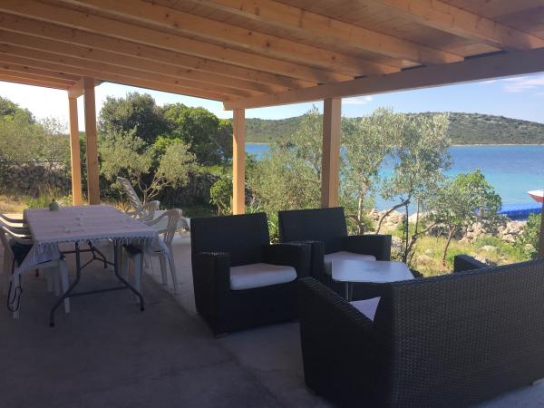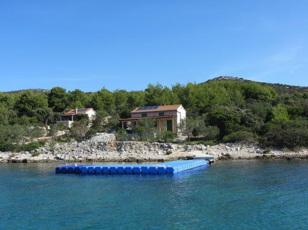 Če želite svoj dopust preživeti bolj mirno, je to odlična izbira. Naša hiša se nahaja na južni strani otoka Pašman v predelu Pećina s pogledom na otoke: Žižanj, Velika in Mala Košara ter Žut. Do hiše lahko pridete z ladjo (v naši organizaciji 50 eur v eno smer) ali s trajektom iz Biograda do Tkona, nato z avtom ali peš čez hrib - 45 minut hoje. Hiša ima 500 m2 vrta, od morja je oddaljena 20 - 30 metrov, zgrajena je iz kamna in ima 45 m2. V pritličju je kuhinja, soba za goste (rezervoar z vodo-deževnico/ni za pitje), jedilnica, ognjišče, WC. Iz pritličja vodijo lesene stopnice v nadstropje/mansardo do spalnic. Spalnici sta fizično ločeni, vsaka ima svoj vhod, v spalnici je zakonska postelja s pogledom na morje. V kuhinji je tekoča voda iz rezervoarja (ne pitna), pomivalnik, plinski štedilnik in hladilnik z zamrzovalnikom. Hiša se napaja z elektriko iz sončnih celic, ki se nahajajo na strehi. Kuriti ogenj je strogo prepovedano!