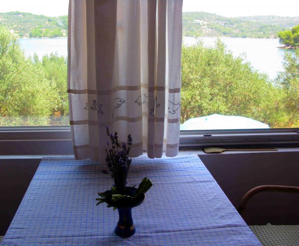 Lepa, samostojna hiša obdana z oljkami in le 20 metrov od morja in čudovite peščene plaže. Hiša ima tri spalnice, kopalnico, popolnoma opremljeno kuhinjo in jedilnico in dnevna soba s pogledom na morje. Ta ekološka hiša je sončno energijo in uporablja deževnica. Uporaba naprav je možno smiselno in moč je 220 V. Hiša se nahaja v mirnem zalivu, ki je le 2,5 km od centra Veli Luki, kjer so trgovine, restavracije in kavarne.