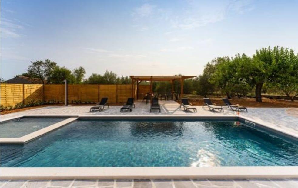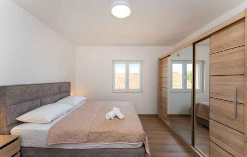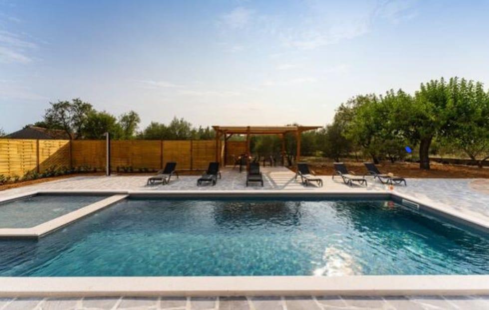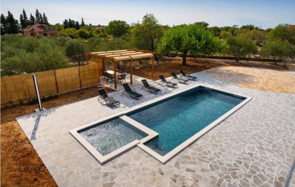 Nova počitniška hiša v majhnem in mirnem kraju.Pored hiše je velik oljčni nasad.Oddaljenost od Biograda je 14 km.